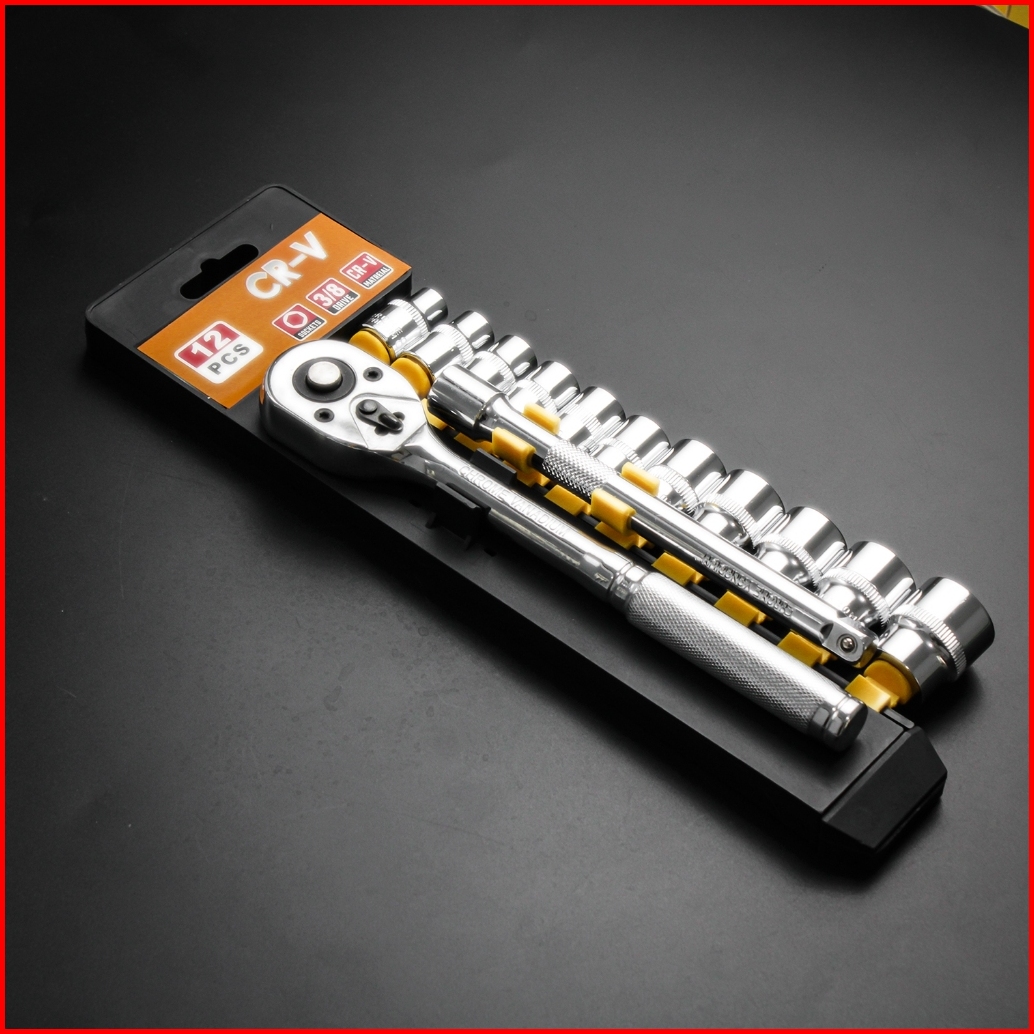 Allefix Kunci Set Socket Sok Set 12pcs Kunci Sok Wrench 3 8 Rachet Handle Multifungsi G-10055