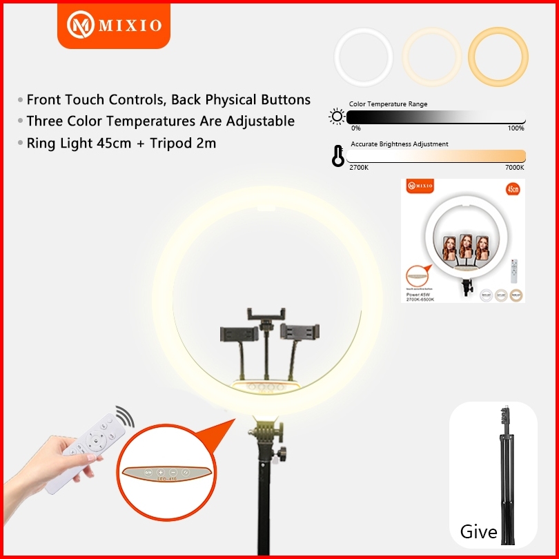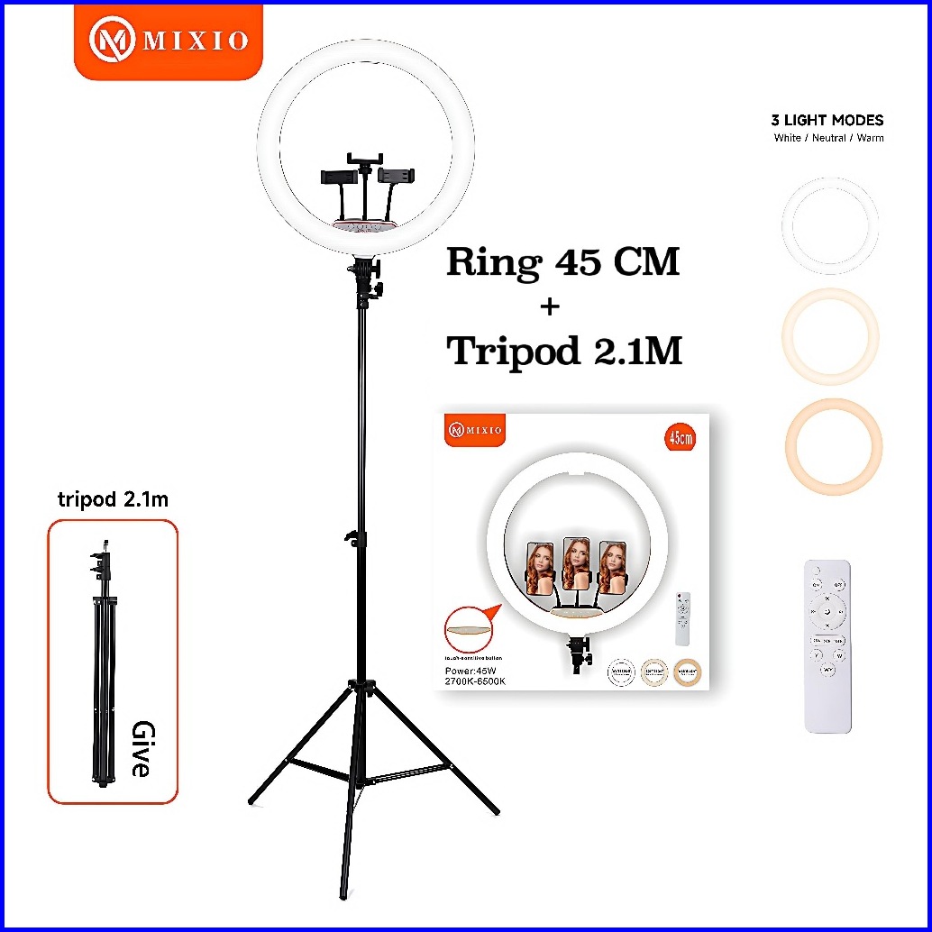 Mixio Ring Light 45cm Light Stand Tripod 2m With 3 Holder Hp Remot