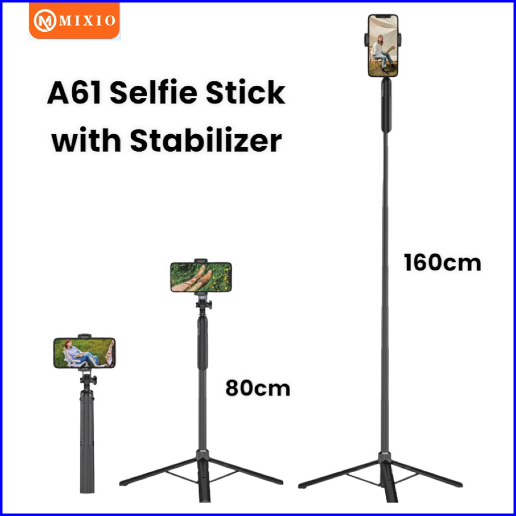 Mixio A61 Tongsis Bluetooth Tripod Stabilizer Gimbal Selfie Stick - 80cm 160cm
