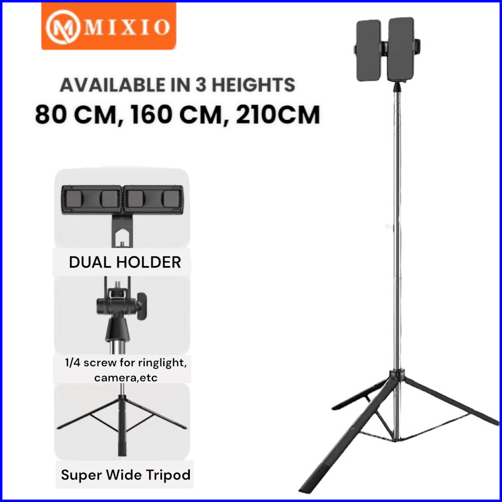 Mixio A32 2.1m Tongsis Tripod Double Phone Holder Tablet Stand