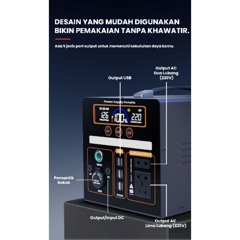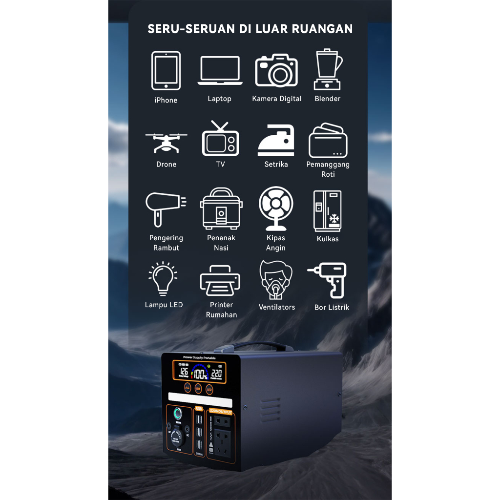 Portable Power Station Outdoor Camping -Genset Listrik Portabel 220V 300W-1700W/50000mAh-360000mah
