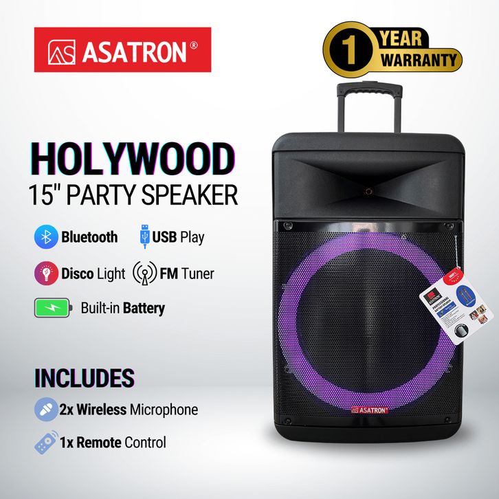 Speaker Aktif Bluetooth Portable Karoke Full Bass Asatron Hollywood 15 Inch Salon 12 15 In/Subwofer/Polytron/Advance/Jbl