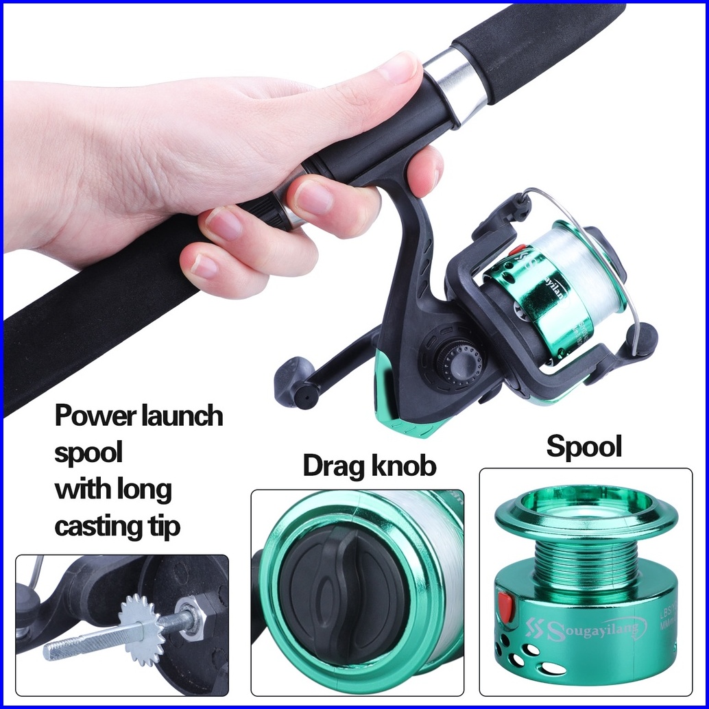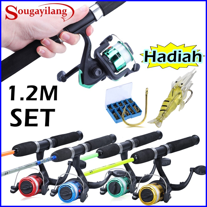 Sougayilang 120cm Joran Pancing Set 2 Sections 1.2m Spining Rod With Fishing Reel Gear Ratio 5.2 1 Ultra Light Alat Panc