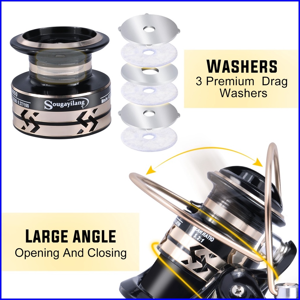 Sougayilang Reel Pancing Seri 1000-5000 Alat Pancing Ikan Karper Kekuatan Tarik 10kg 5 1bb Dengan Gratis Gulungan Pancin