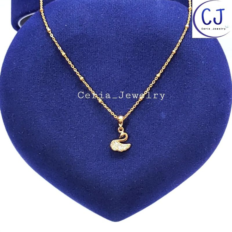 Kalungg Perak Asli Silver Wanita 925 Lapis Ems Asli Rantai Jedar Dengan Lontin Angsa - Kalungg Wanita Anti Karat