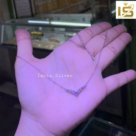 Kalungg Aurel Fuji Nagita Slavina Perak Asli Silver Wanita 925 Lapis Ems Putih Asli Rantai Nori Polos Kecil