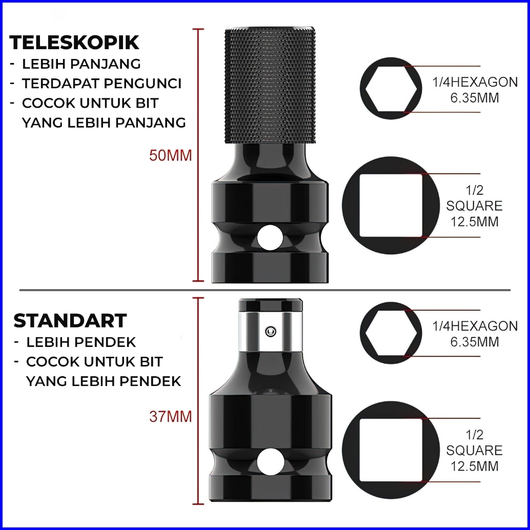 Allefix Adapter Impact Wrench Penghubung Mata Obeng 1 2 Ke 1 4 Inch- 6727