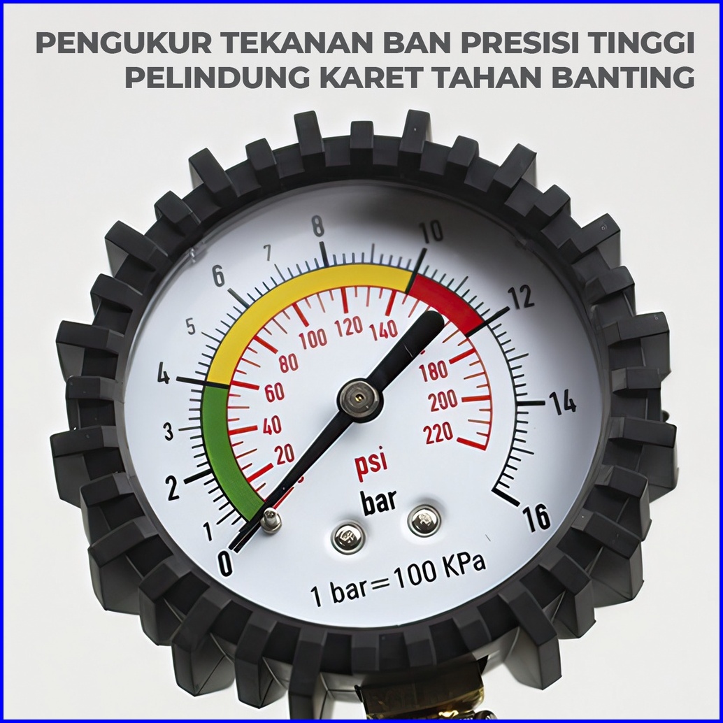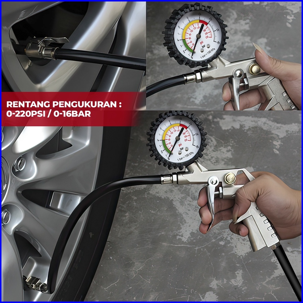 Allefix Alat Isi Ukur Angin Tire Pressure Gauge Inflator 3 In 1 6624