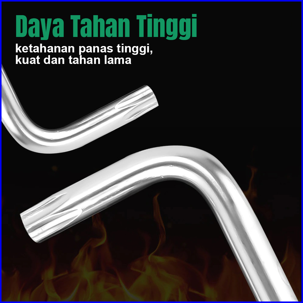 Allefix Kunci L Bintang Set 9 Pcs Ext Premium Kunci L Kombinasi Hex Star Vanadium Chrome L-10199