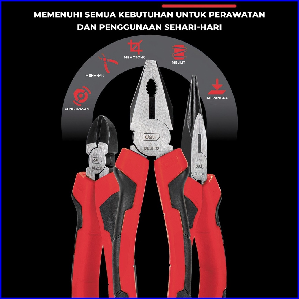 Allefix Tang Set 3pcs Tang Kombinasi Tang Lancip Tang Potong Multifungsi-6629