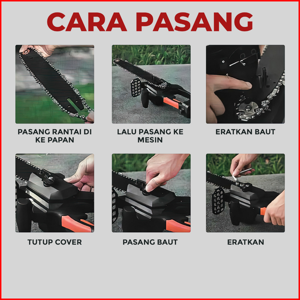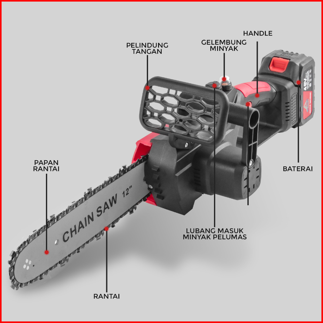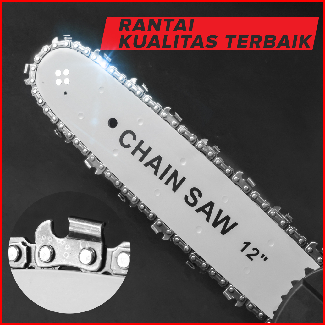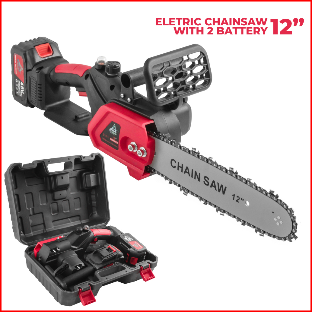 Allefix Chainsaw Cordless Gergaji Rantai Elektrik Mini 12 Inch 2 Baterai 48v -6643