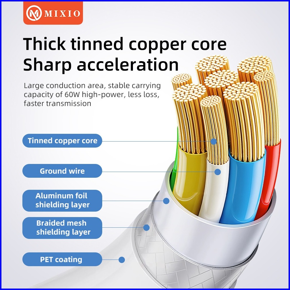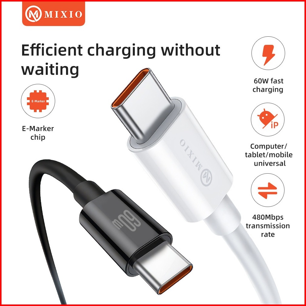 Mixio Mk-01c 60w 1m Kabel Data Type-c To Type-c Pd Fast Charging