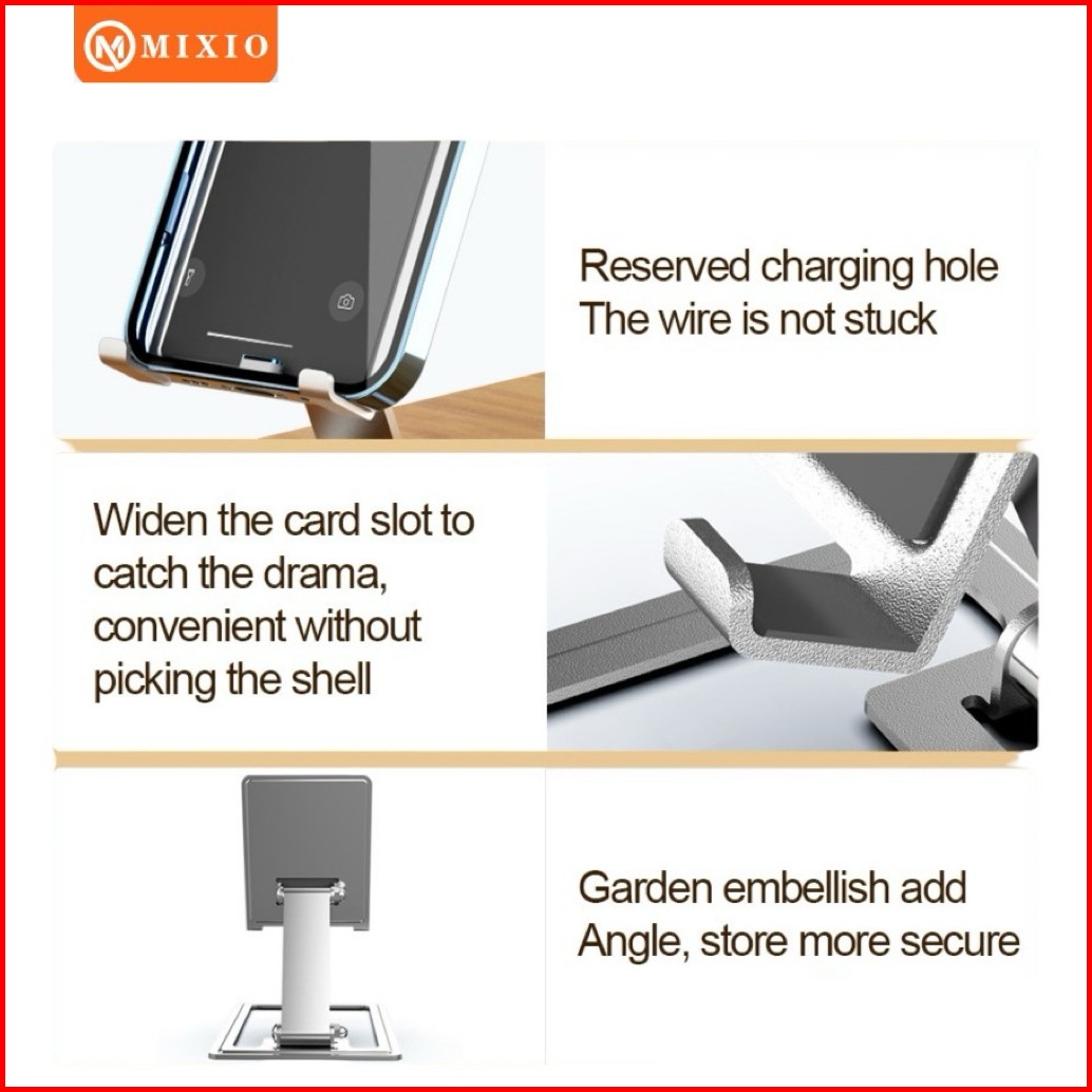 Mixio - Zm-04 Stand Alumunium Dudukan Hp Phone Holder Foldable Rotate 270
