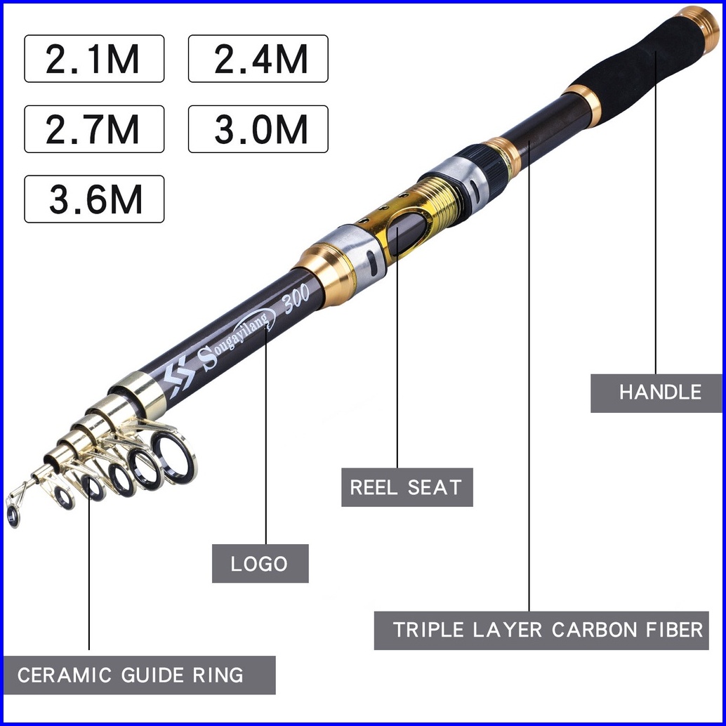 Sougayilang Joran Pangcing 2.1m-3.6m Carbon Teleskopik Danau Laut 210 240 270 300 360 Pangcingan