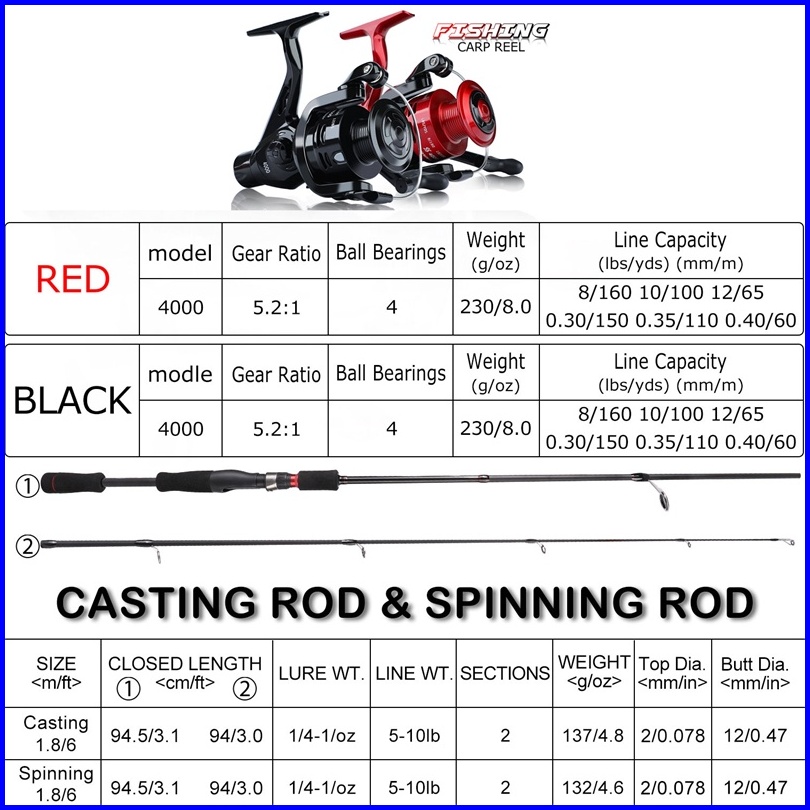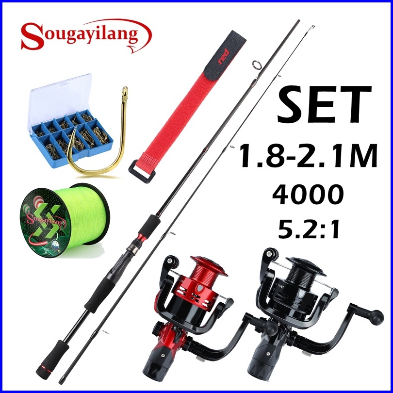 Sougayilang Joran Set Tongkat Pancing 2 Bagian 1.8-2.1m 4000 Reel Pancing Gulungan Pancing 500m Senar Kait Hadiah