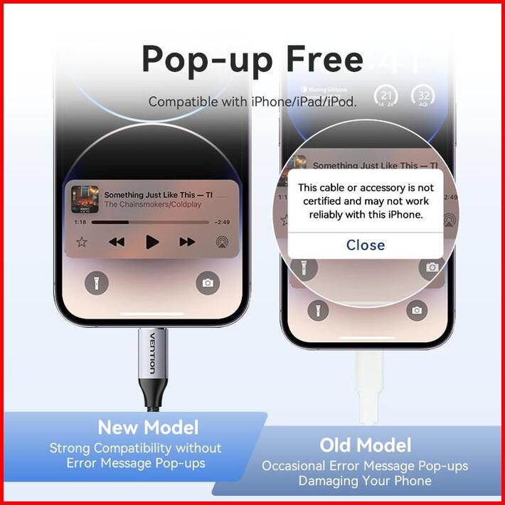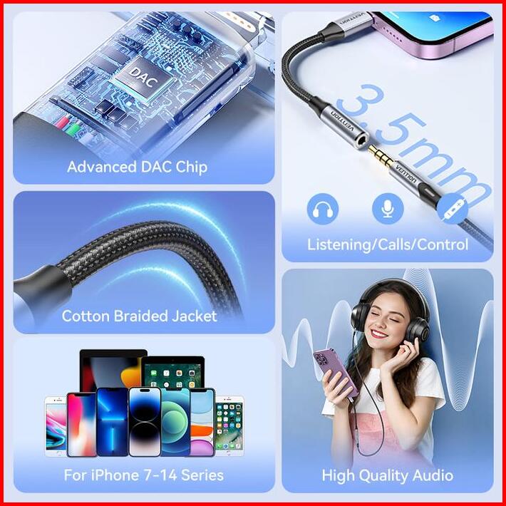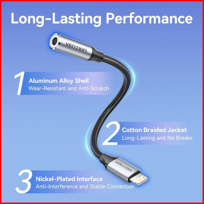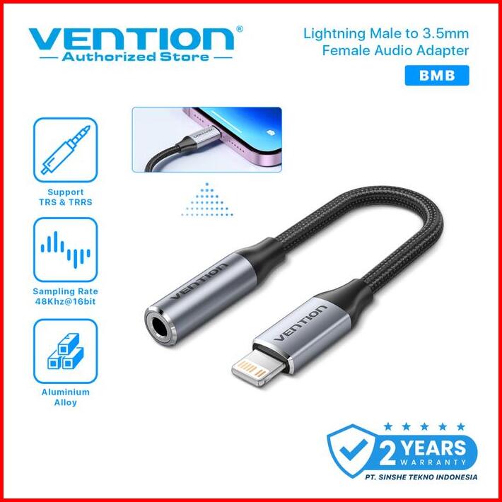 Vention Lightning Male To 3.5mm Aux Female Audio Adapter Converter Jack Iphone Gray Wire Metal