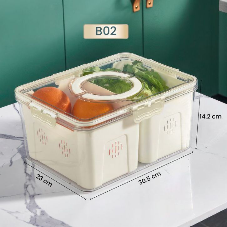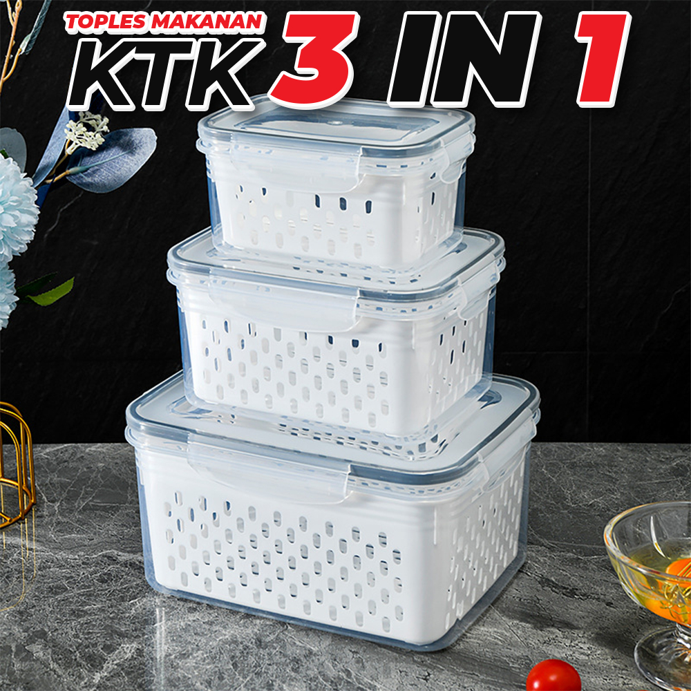 Keranjang Pengering Sayuran Buah Saringan Kotak Penyimpanan Wadah Makanan 3in1 Toples
