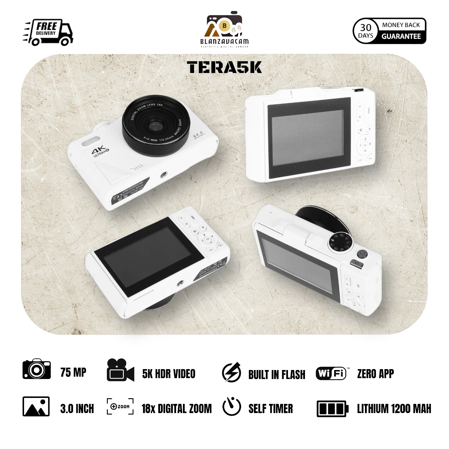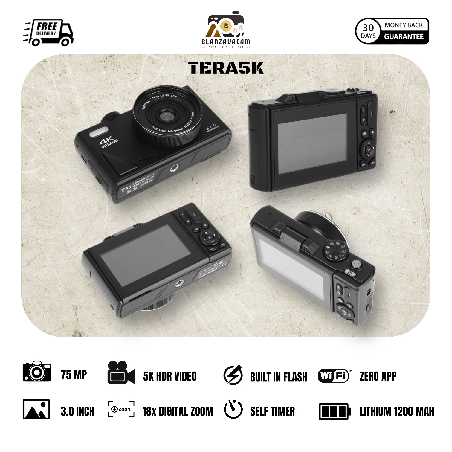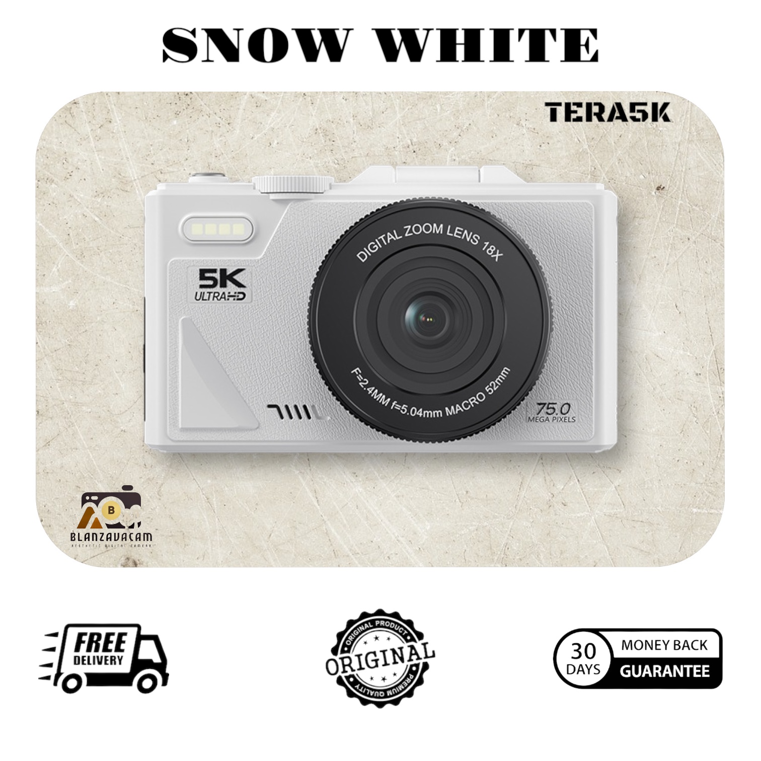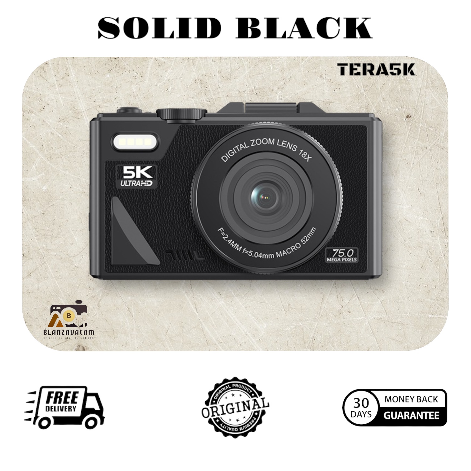 Kamera Digital BLANZAVA CAM TERA5K 5K Digital Camera Original 64MP Flip Screen 18X Digital Zoom Wi-Fi Support Free 32GB