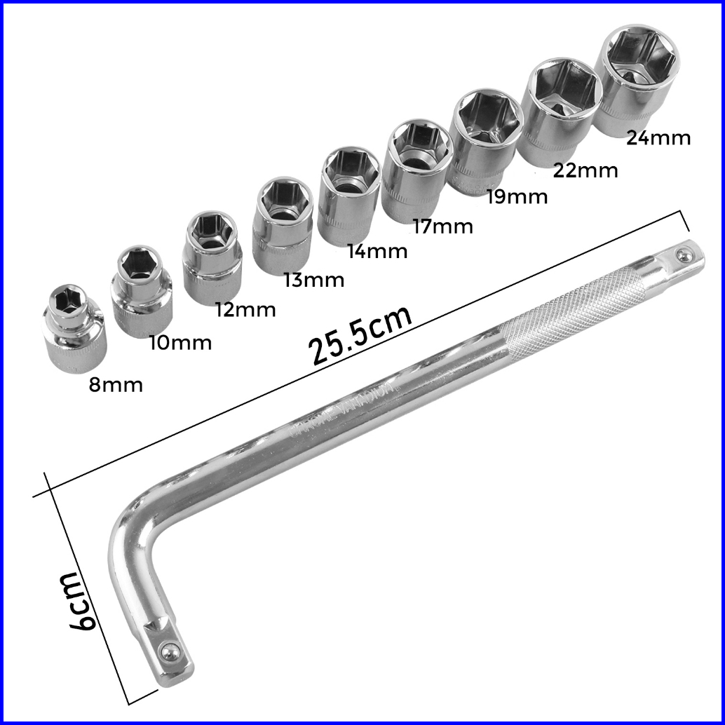 Allefix Kunci Set Sok Isi 10 Pcs Kunci Shock Socket 1 2 Inch Set 10pcs- G-10017