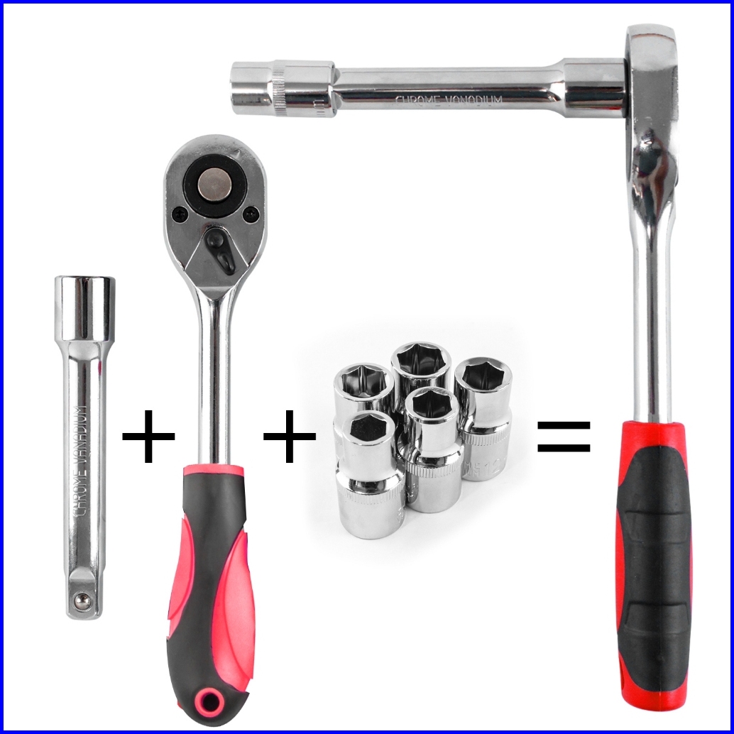 Allefix Kunci Set Socket Sok 12pcs Kunci Sok Wrench 1 2 Rachet Handle Multifungsi G-10052