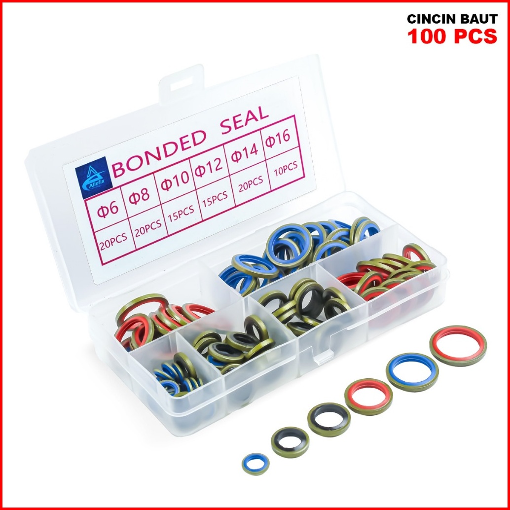 Allefix Karet Seal Ring Karet Baut Set 100pcs Head Cop Cylinder Washer Seal Head Universal- 6704