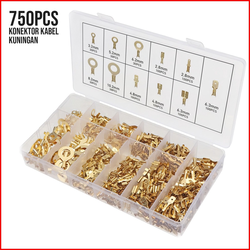 Allefix Kuningan Terminal Kabel Ring Lug Terminal Konektor Kabel Listrik Mobil Set 750pcs- 6615