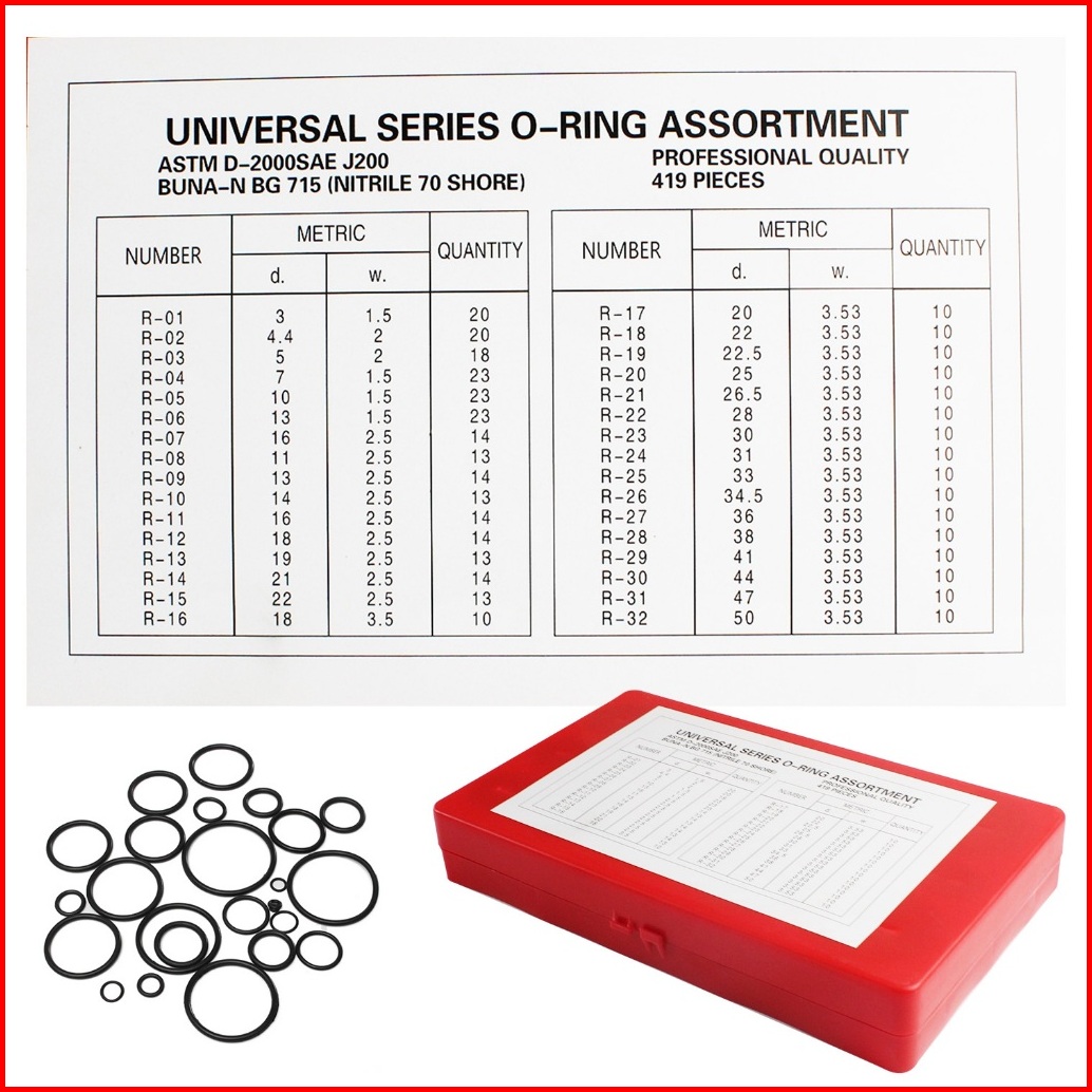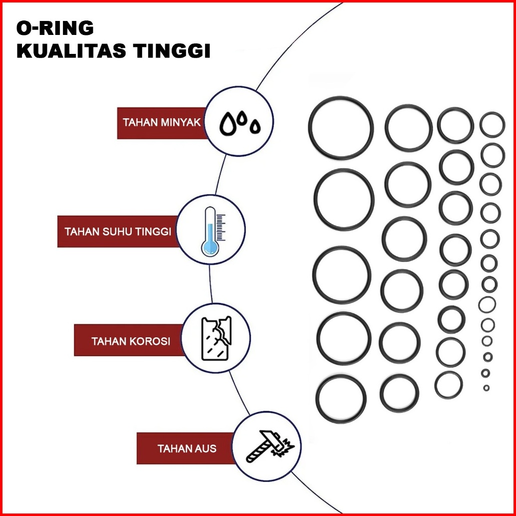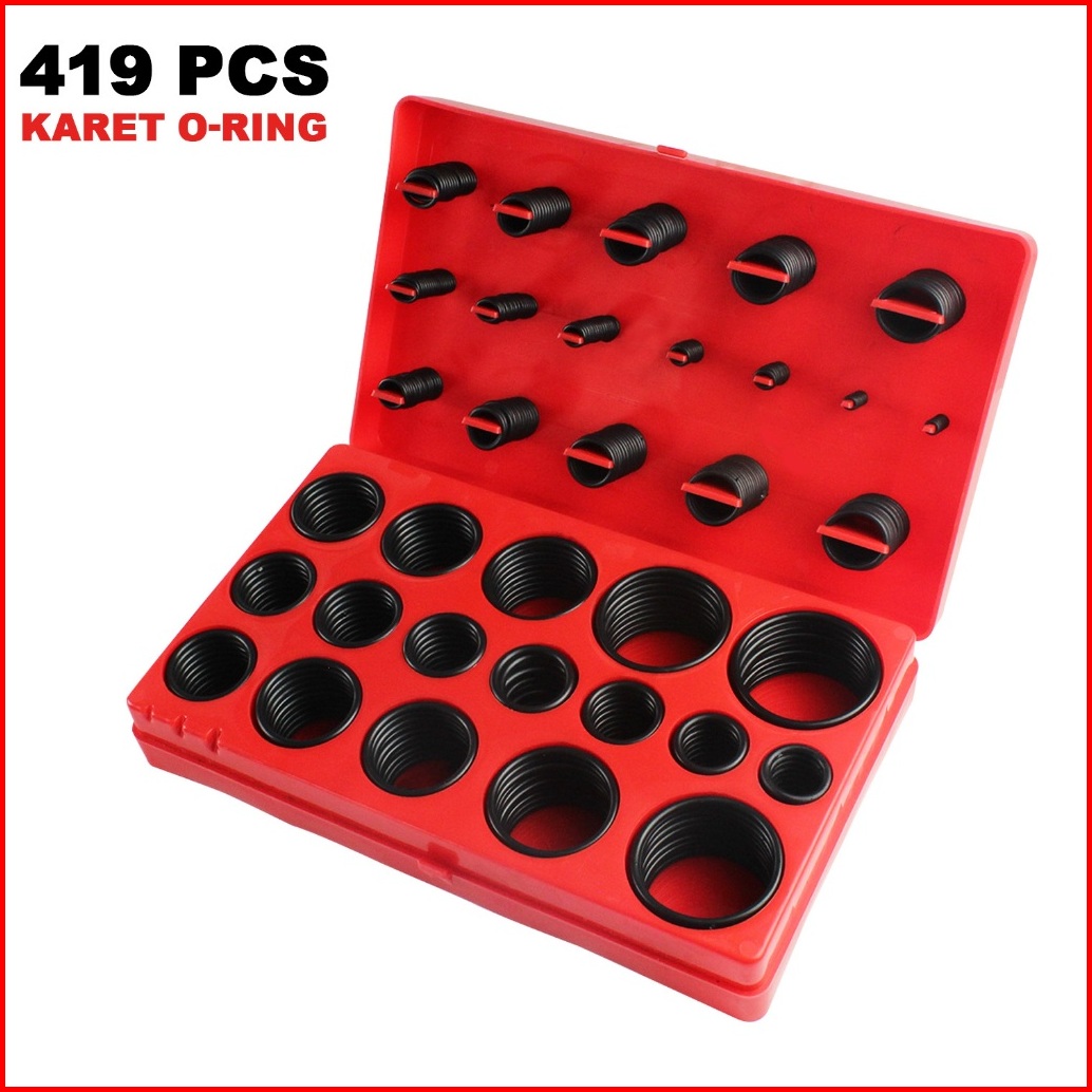 Allefix O-ring Set - Oring Seal Kit 419pcs - Karet Ring Set - Seal Set Motor Mobil - Box Merah