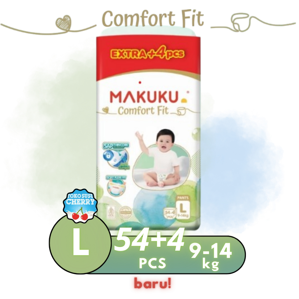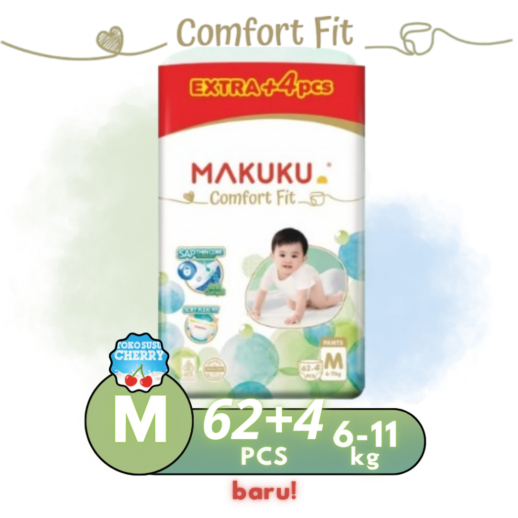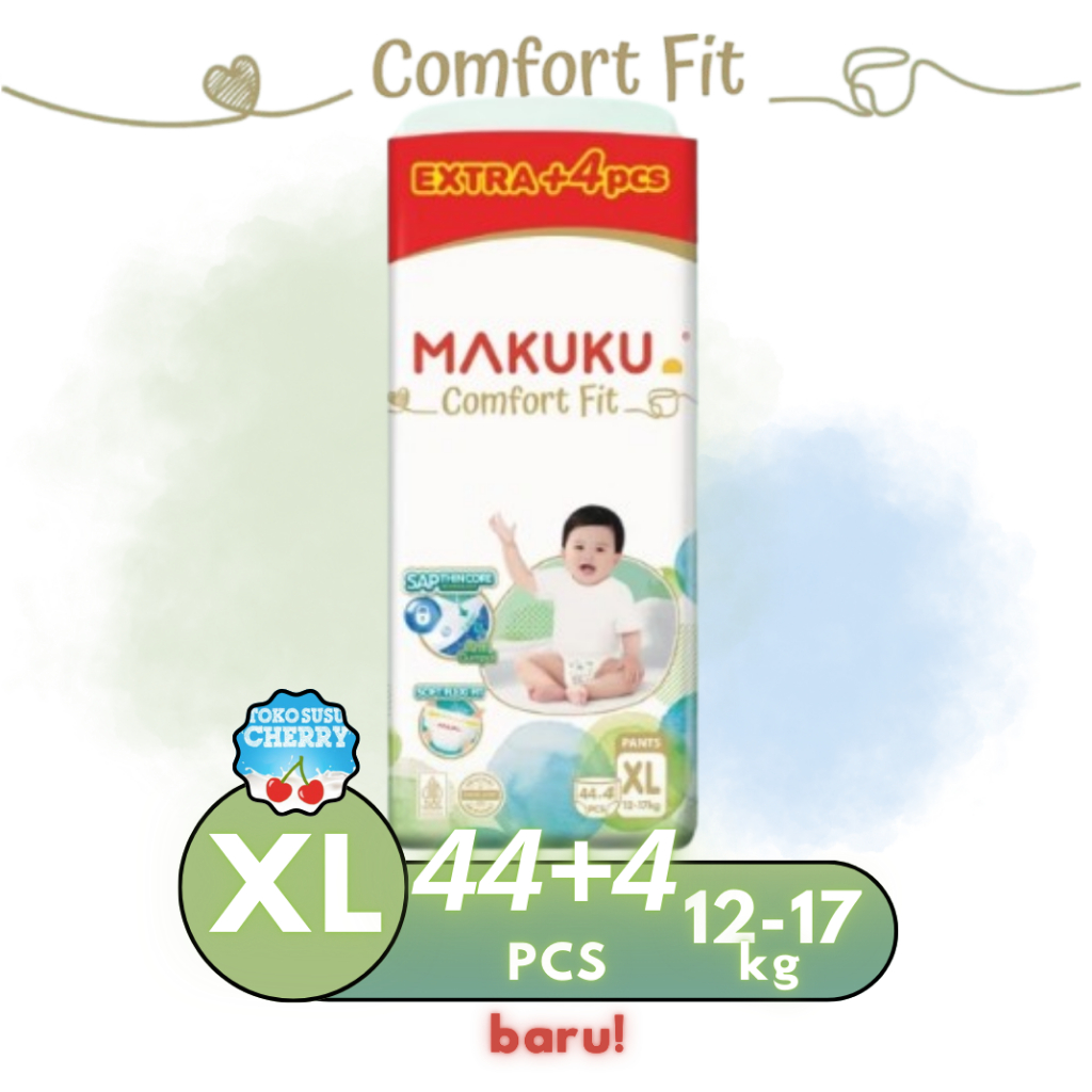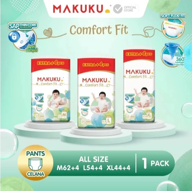 MAKUKU SUPER JUMBO AIR DIAPERS COMFORT FIT SAP SIZE M60+6 L54+6 XL44+6 - MAKUKU POPOK TIPE CELANA