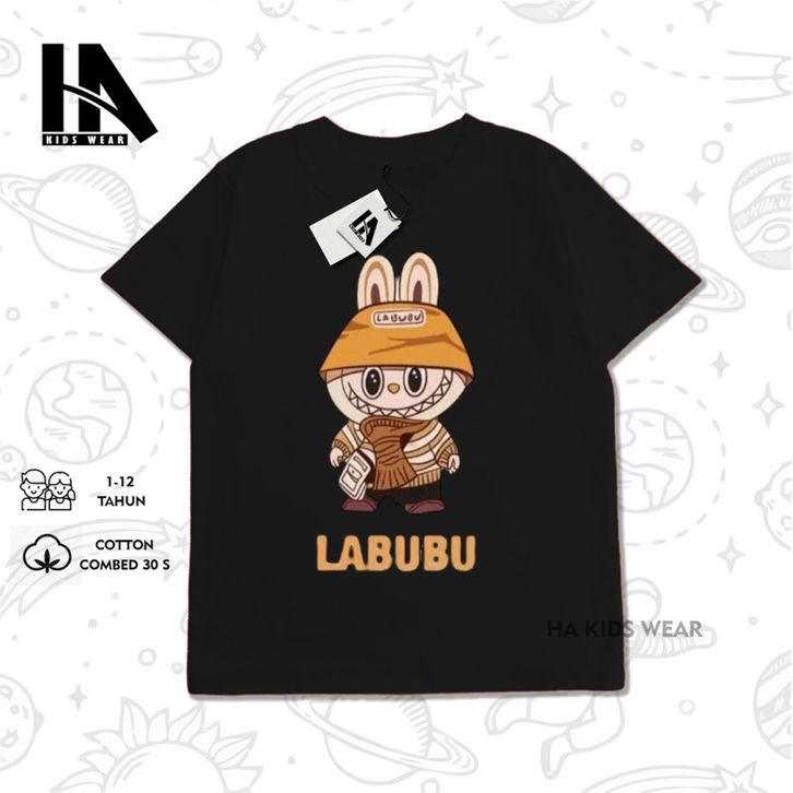 Baju Kaos Anak Distro laki laki-laki & Perempuan Labubu 1-12Thn Catton Combad 30s