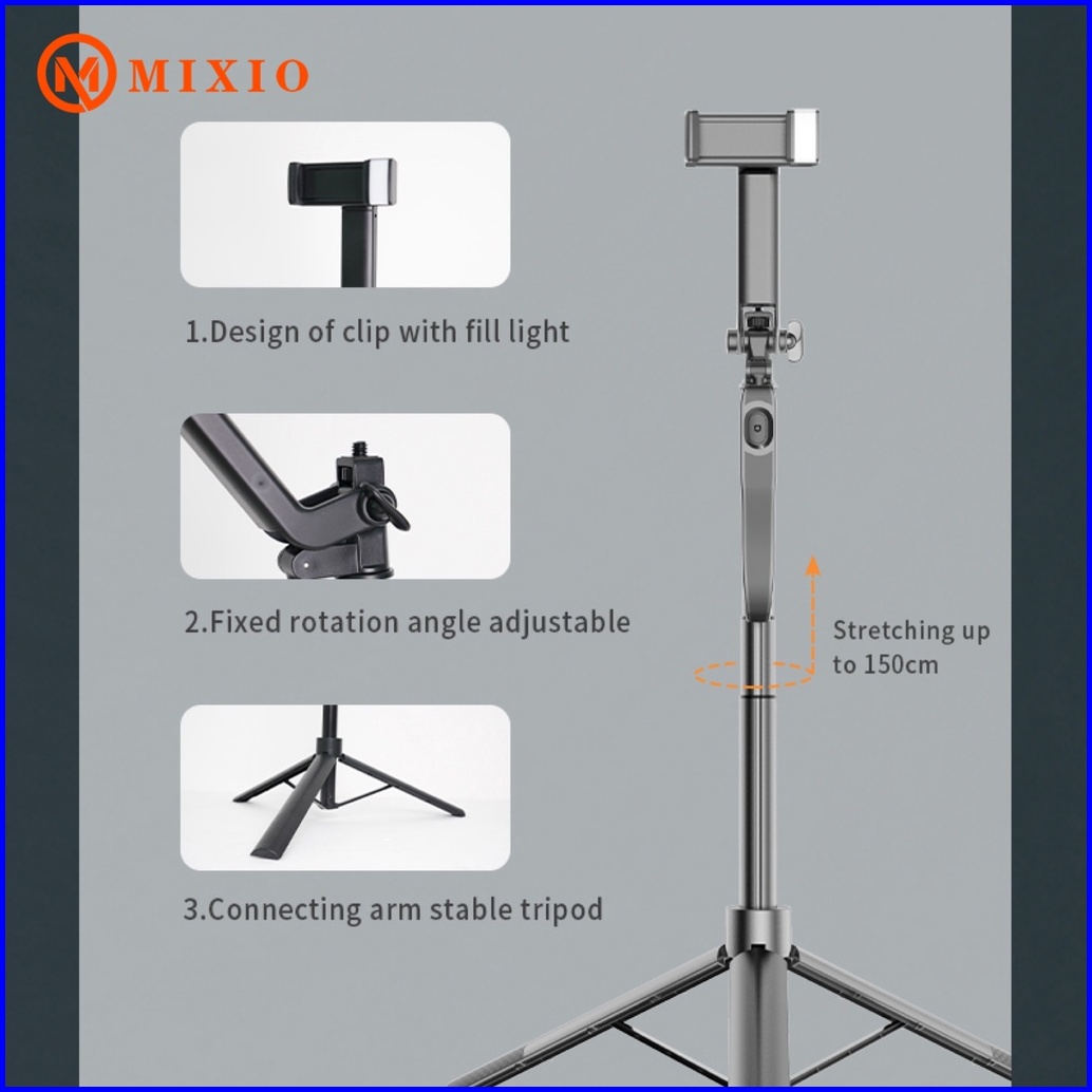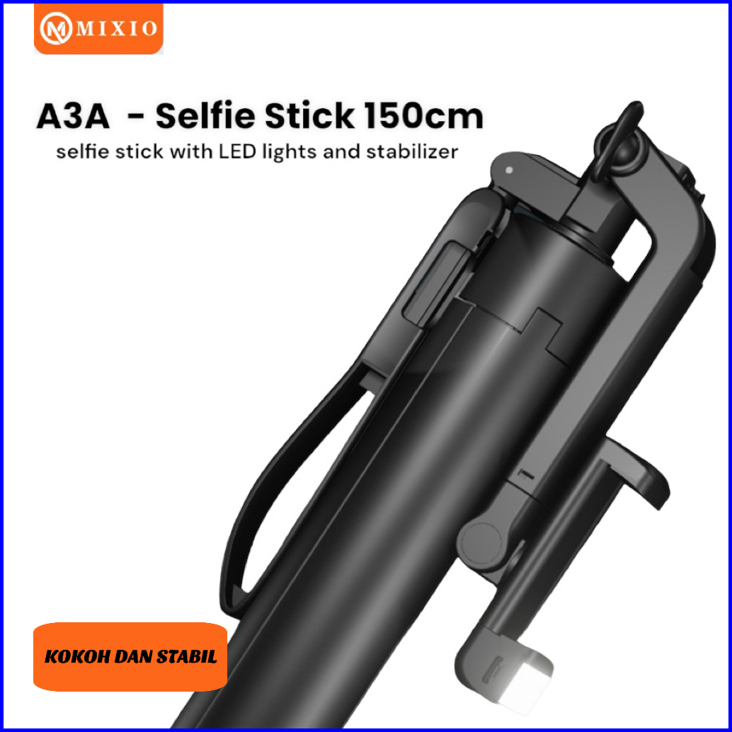 Mixio A3a Tongsis 1.5m Bluetooth Selfie Stick Tablet Tripod 150cm