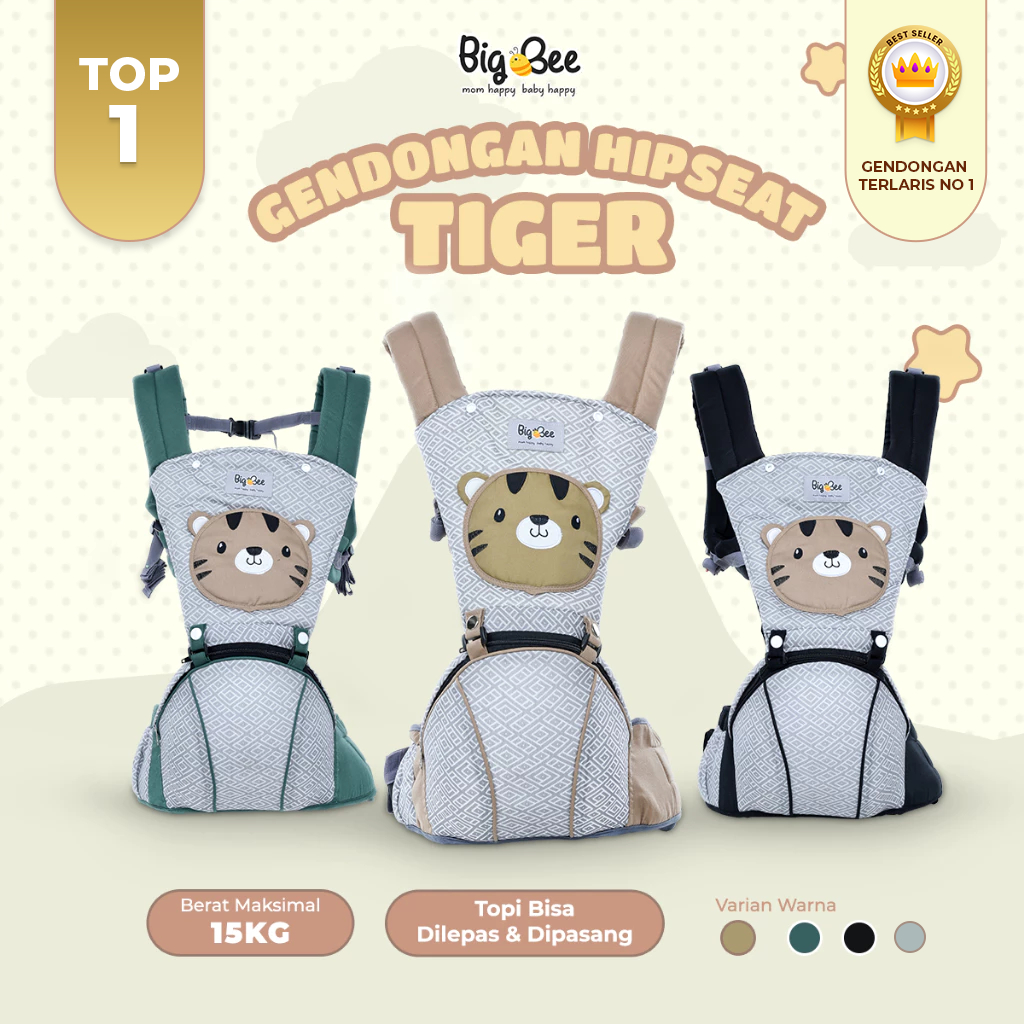 Gendongan Hipseat Saku Karakter Tiger / Gendongan Bayi topi Bisa dilepas pasang