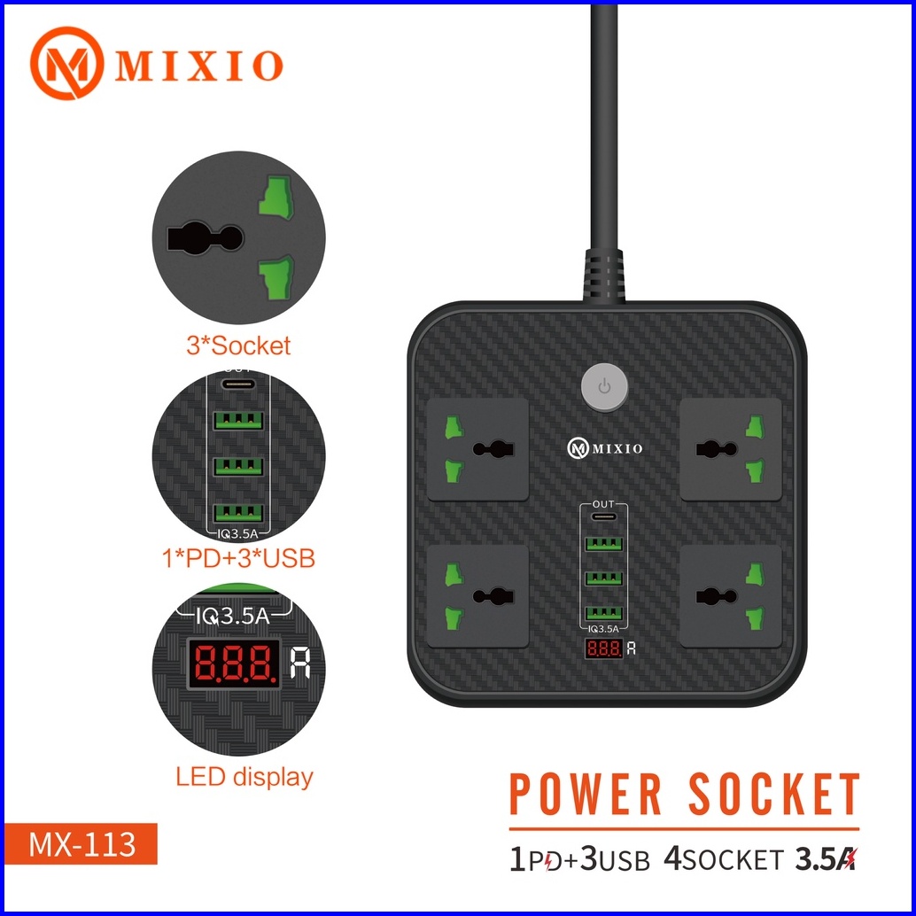 Mixio Mx-113 3.5a Power Socket Charger 1pd 3 Usb 4 Socket