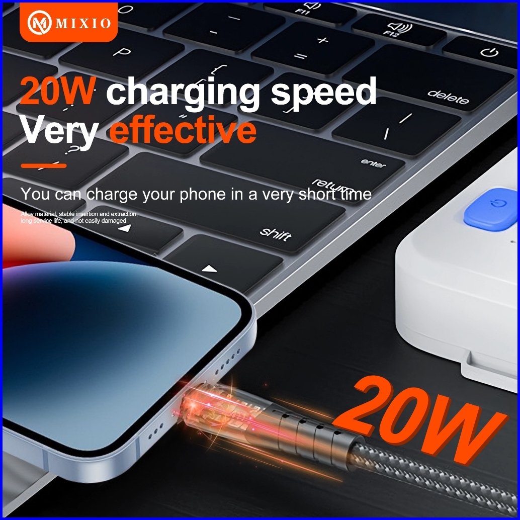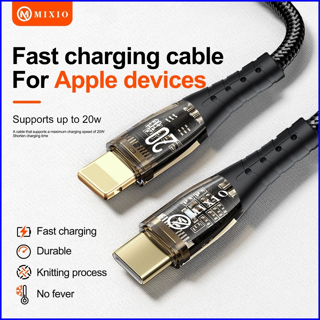Mixio Mk-02l Transparant 20w Kabel Data Type C To Lightning Iphone Fast Charge