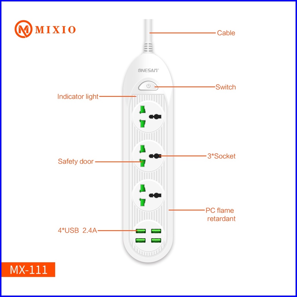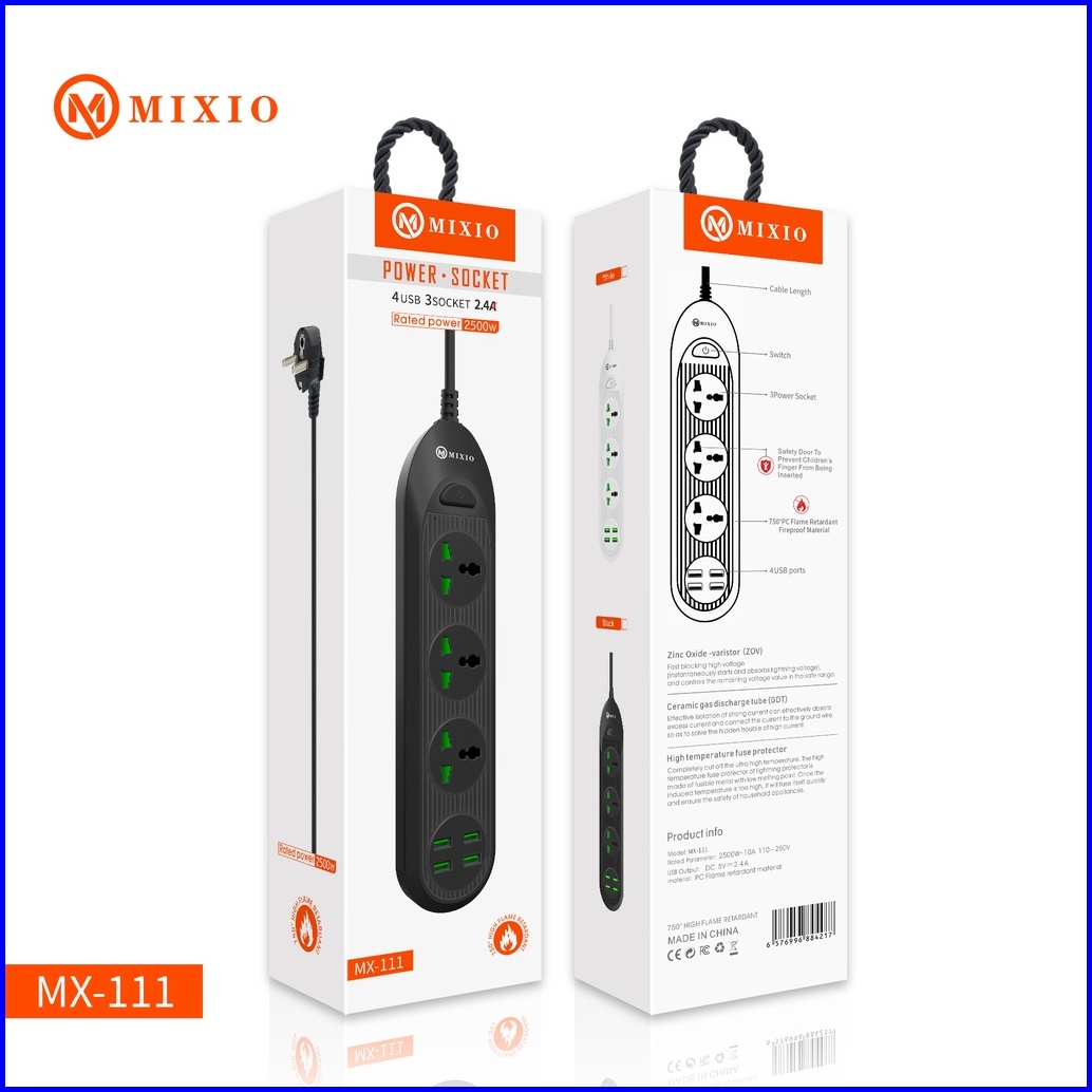 Mixio Mx-111 Power Socket Power Strip 4 Usb Charger With 3 Socket 2500w