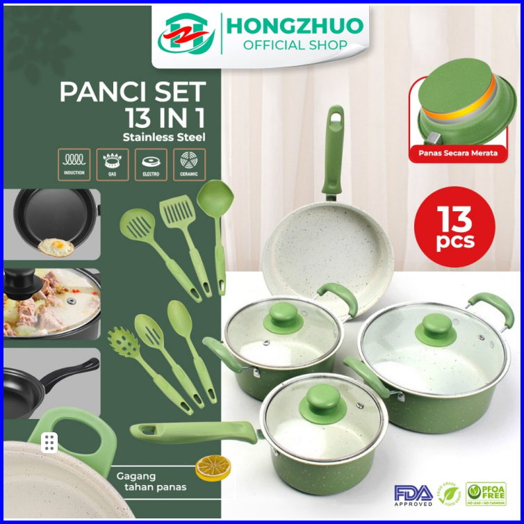 Hongzhuo Cookware Panci Set Wajan Penggorengan Spatula Set Isi 13pcs 1 Set Frypan Saucepan