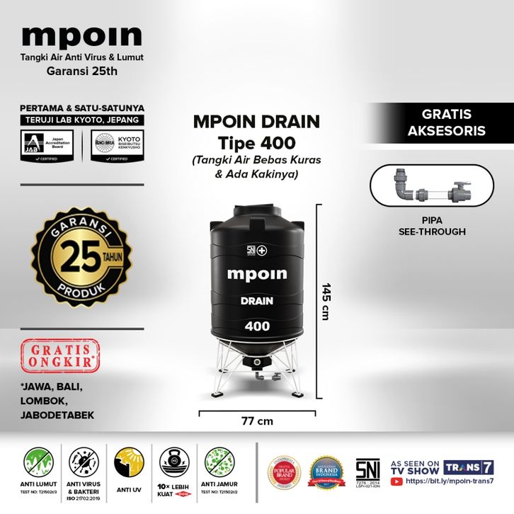 MPOIN Tangki Tandon Toren Air Drain 400 Anti Bakteri Anti Lumut Garansi 25 Tahun