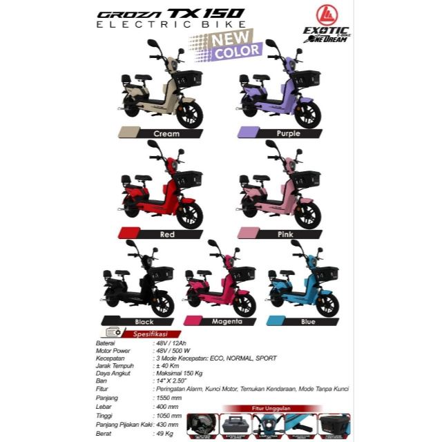 SEPEDA LISTRIK EXOTIC GROZA TX 100 dan 150