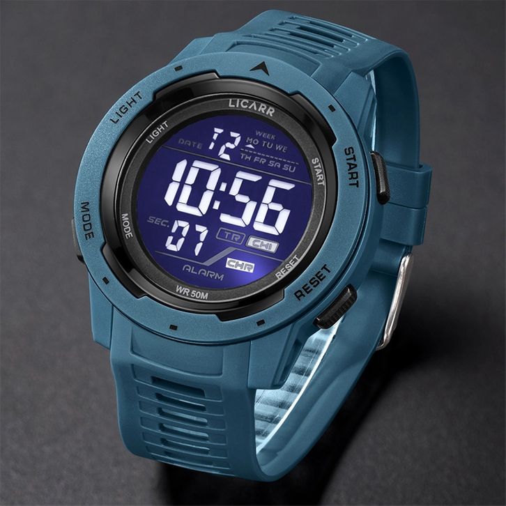 LICARR Jam Tangan Pria Merek Olahraga Dital Anti Air Santai Keren Silikon Multifungsi Jam Tangan