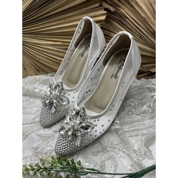 sepatu wedding wanita pesta Melissa putih 7cm kaca