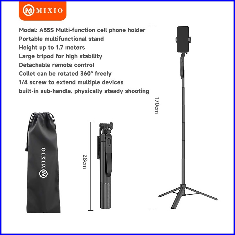 Mixio A61 Tongsis Bluetooth Tripod Stabilizer Gimbal Selfie - 160cm