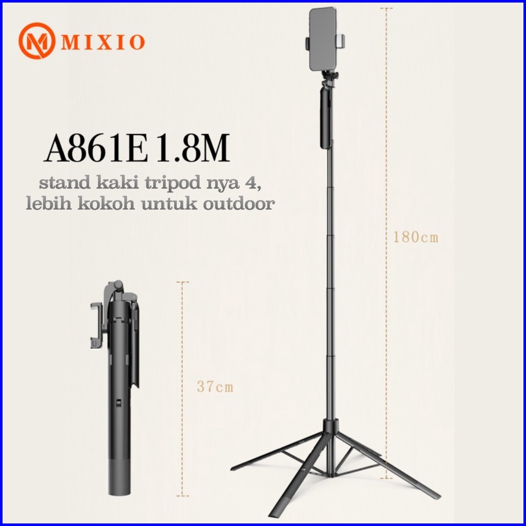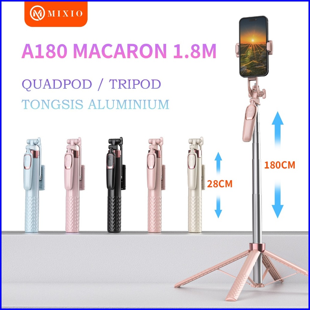 Mixio Quadpod 1.8m Macaron Tongsis Tripod Bluetooth Stabilizer 180cm 4 Kaki