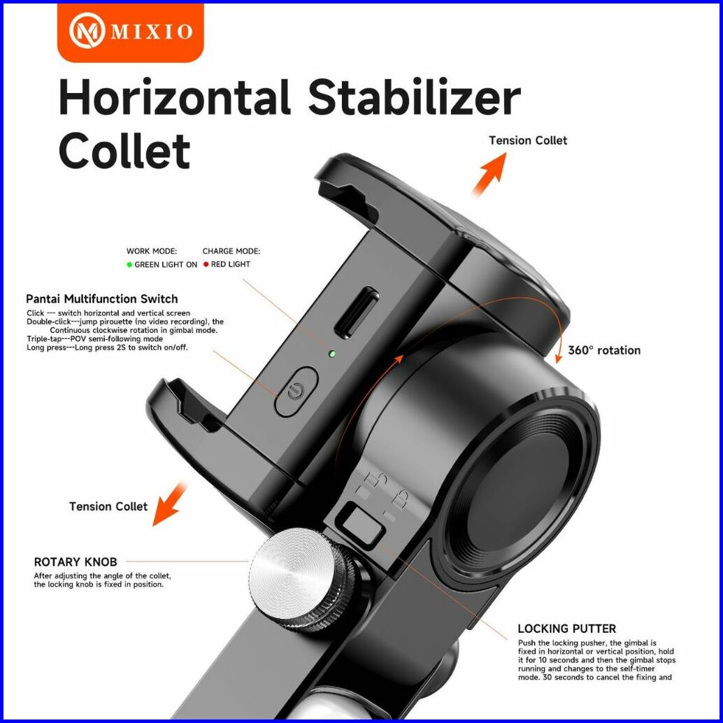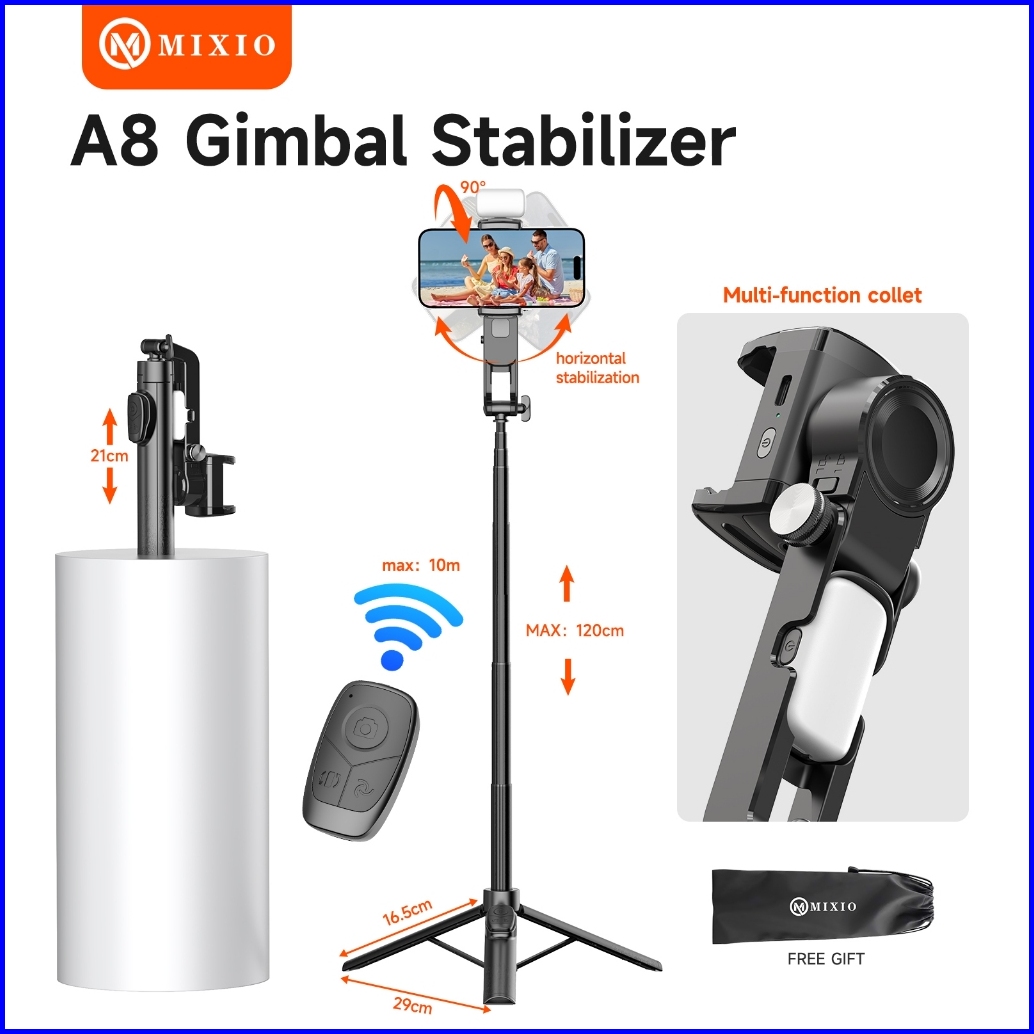 Mixio A8 Gimbal Stabilizer Hanphone Selfie Stick Tripod Anti Goyang