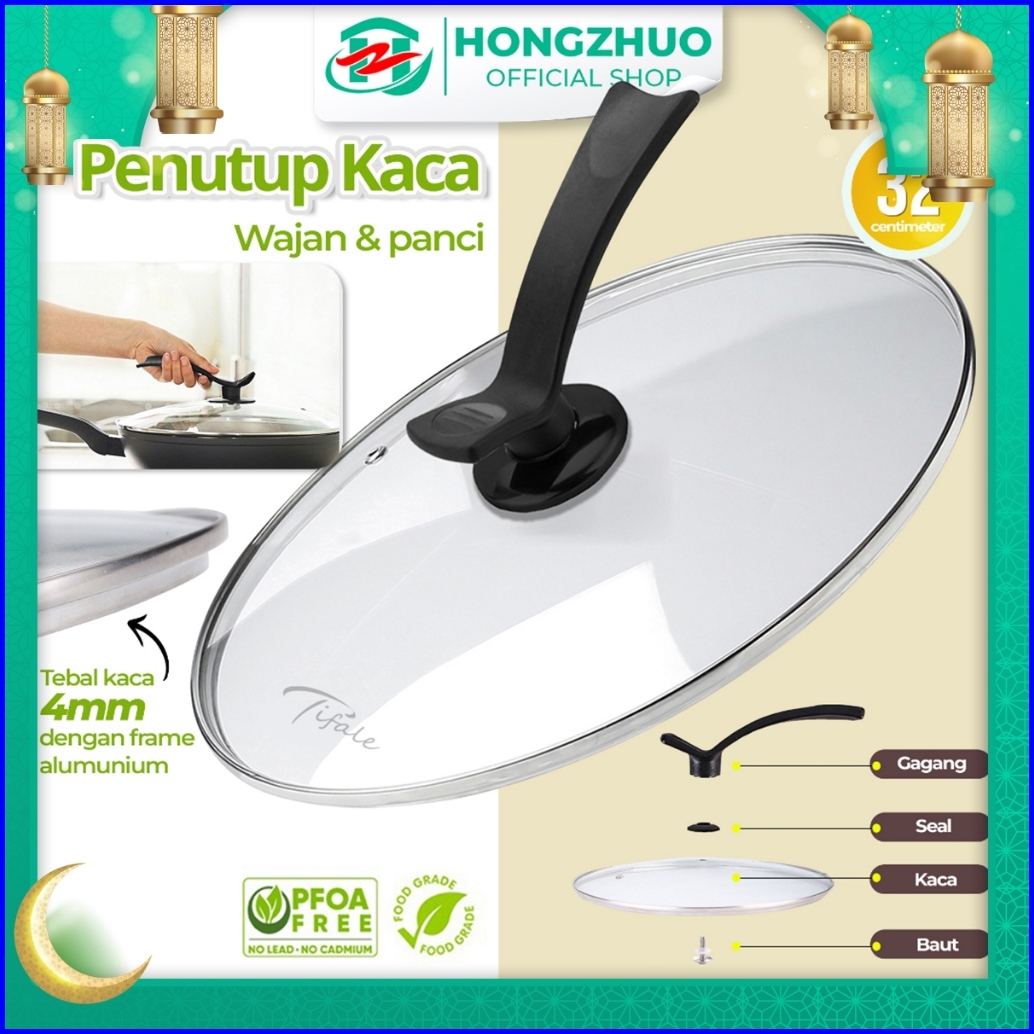 Hongzhuo Tutup Wajan Penggorengan Tutup Panci Bahan Kaca Dan Tebal Ukuran 32cm