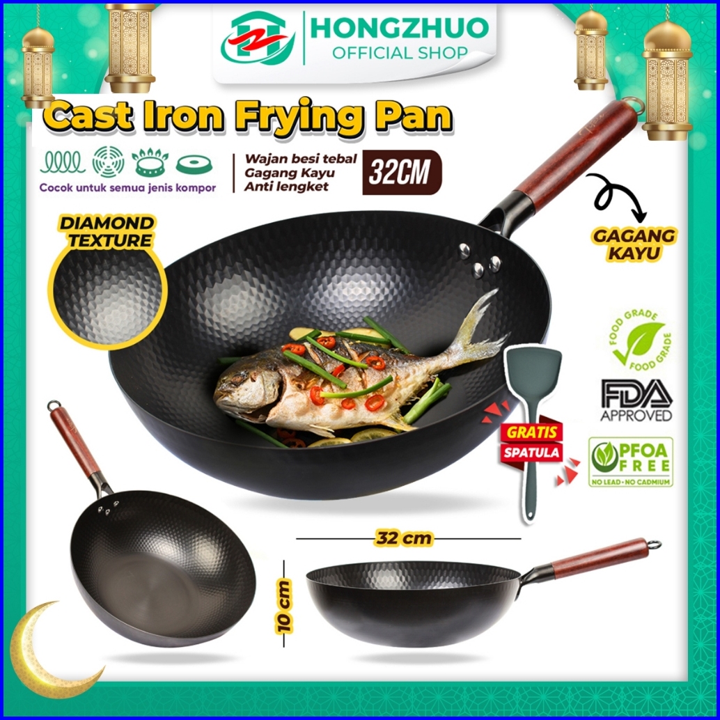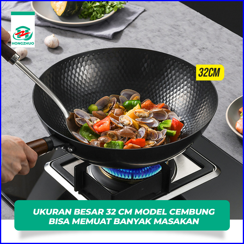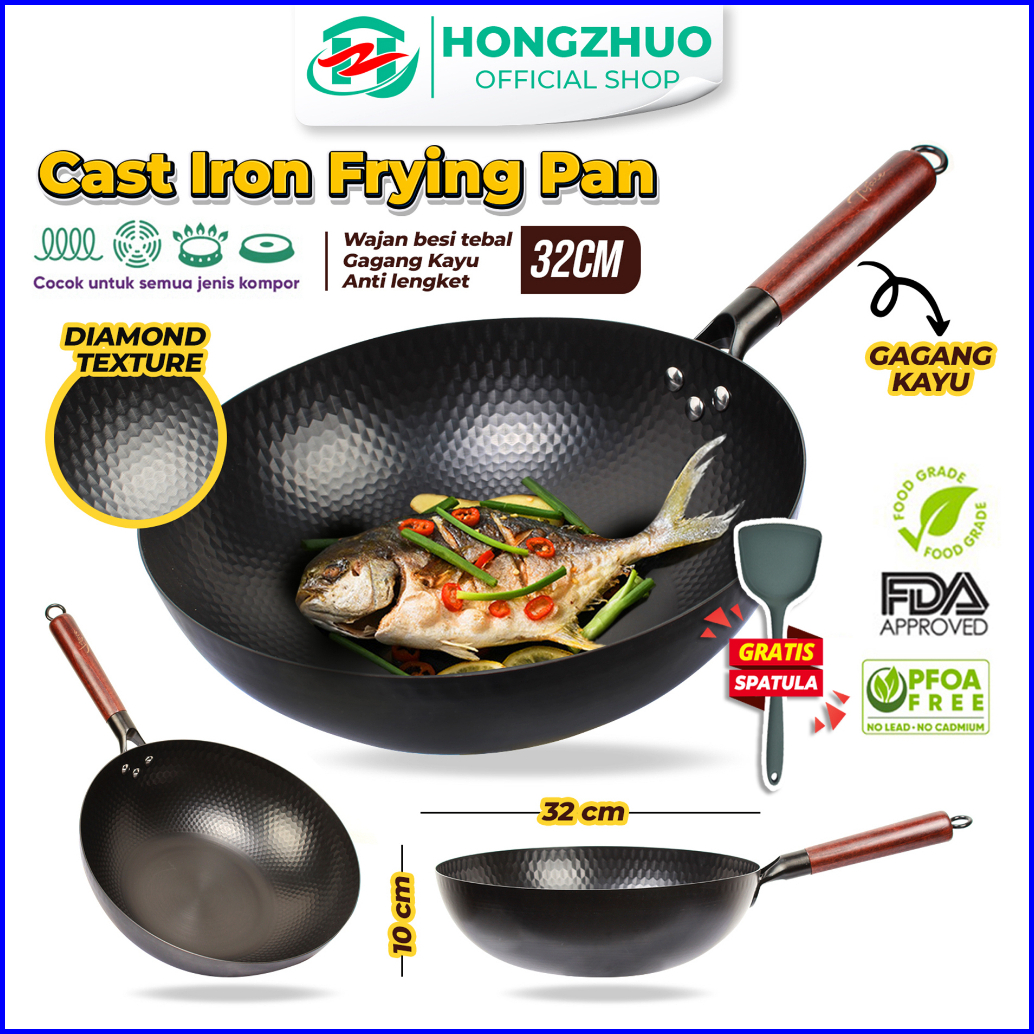 Tifale By Hongzhuo Diamond Fry Pan 32cm Anti Lengket Cocok Segala Jenis Kompor Gagang Kayu Anti Leleh Free Spatula Silik
