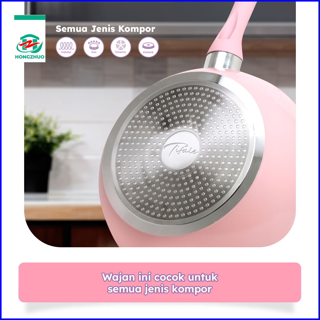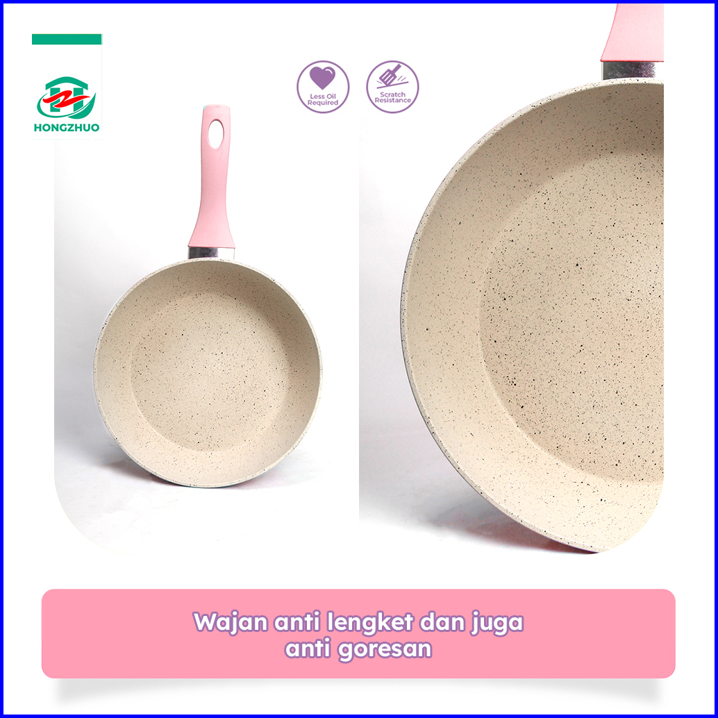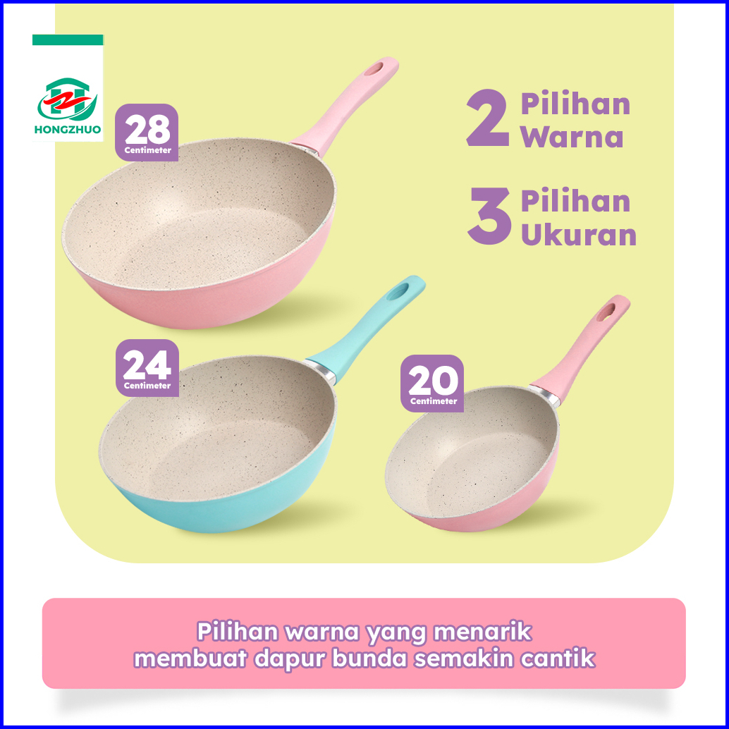 Tifale By Hongzhuo Wok Pan 20cm 24cm 28cm Panci Penggorengan Wokpan White Marble Pastel Panci Masak Sayur Anti Lengket