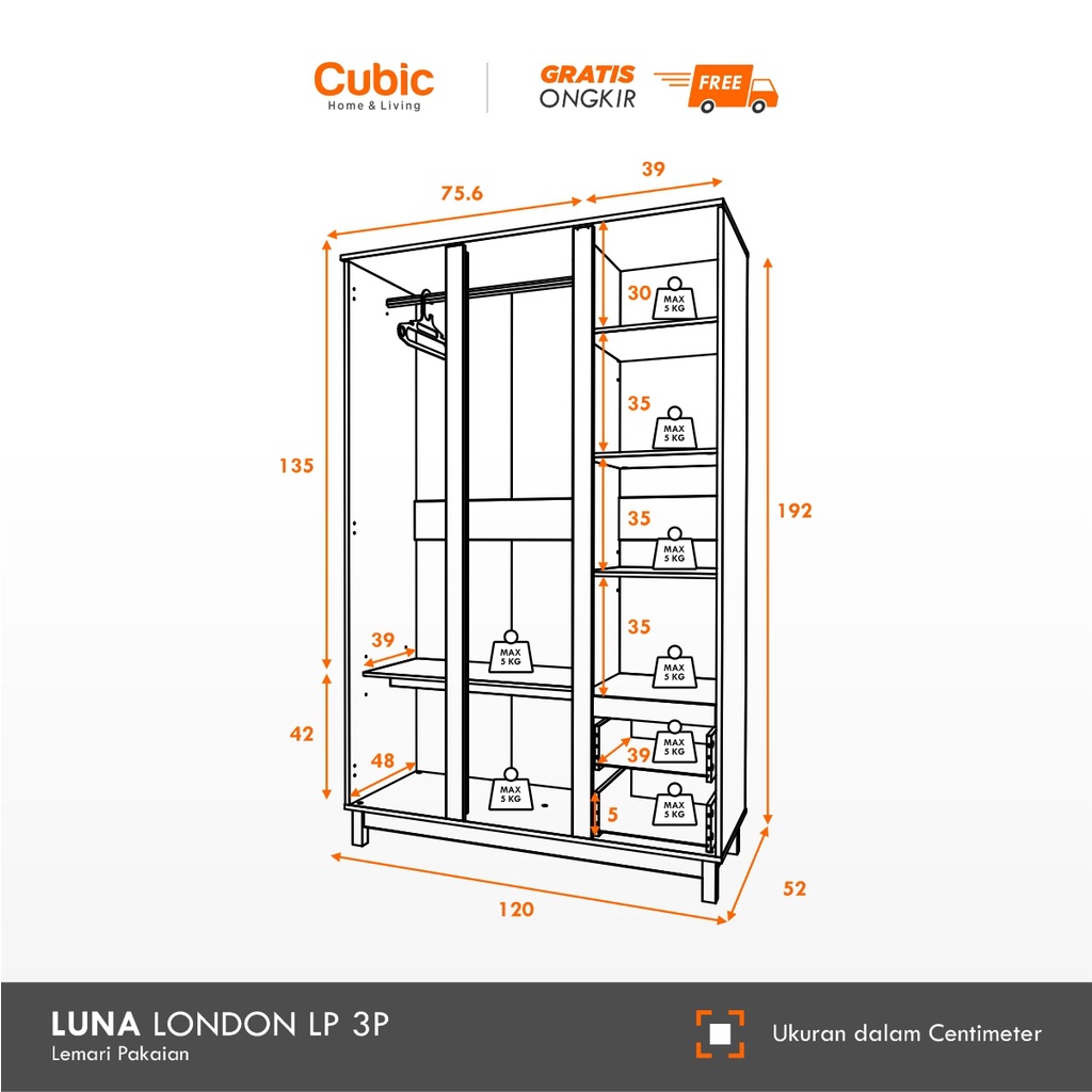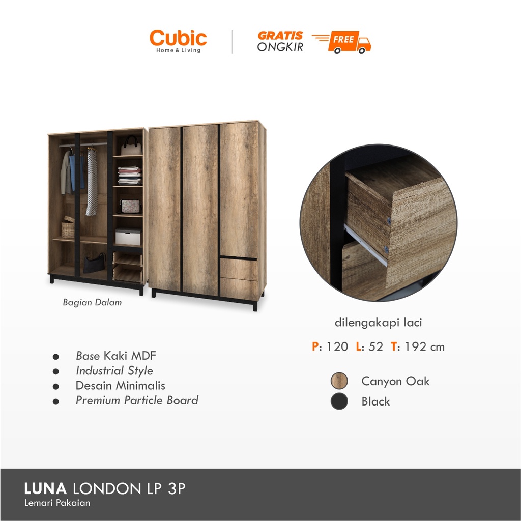 Cubic Lemari Pakaian 3 Pintu / Lemari Minimalis / LUNA LONDON LP 3P