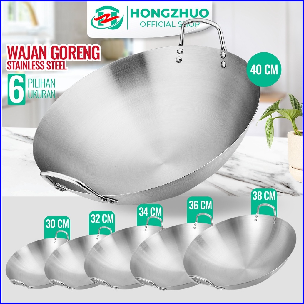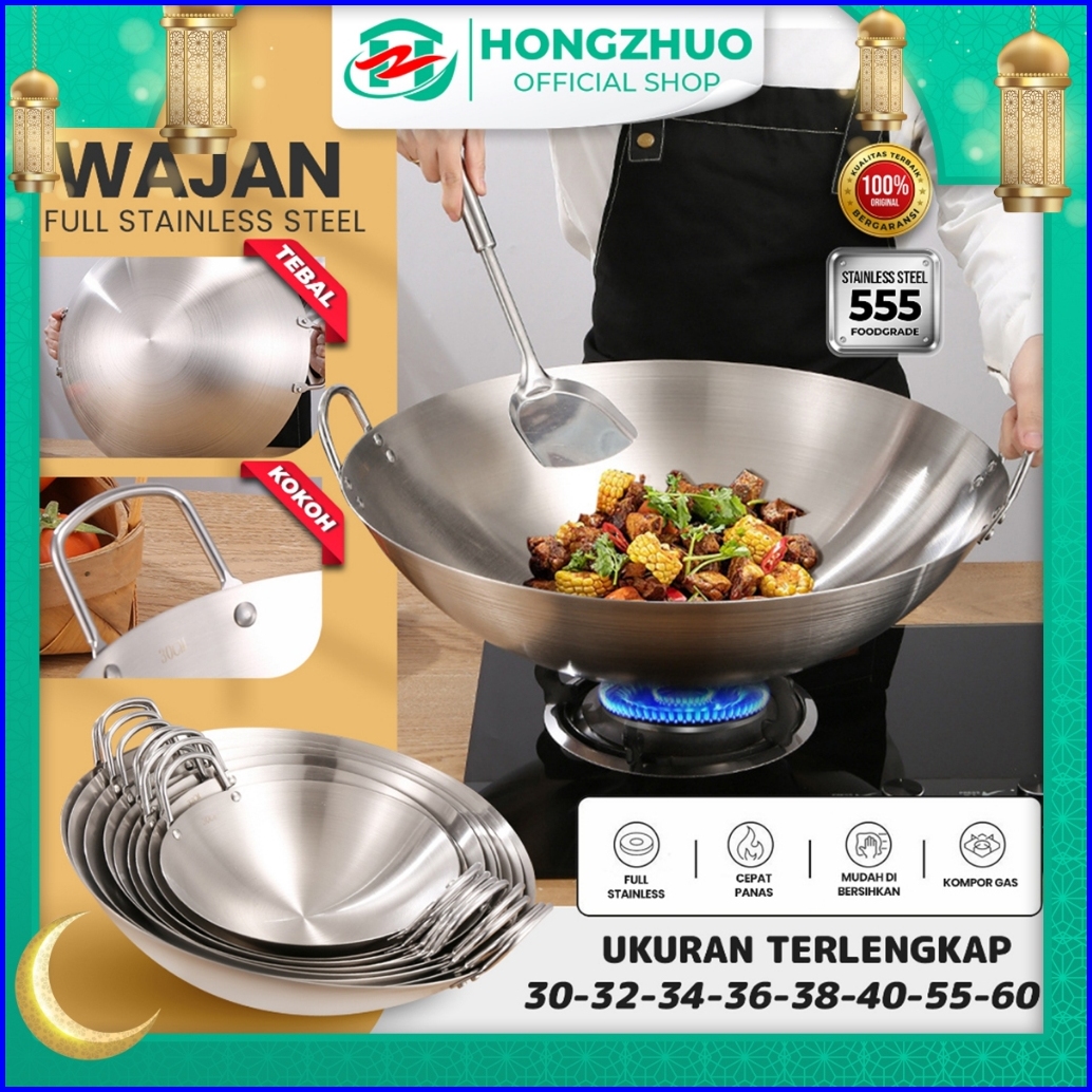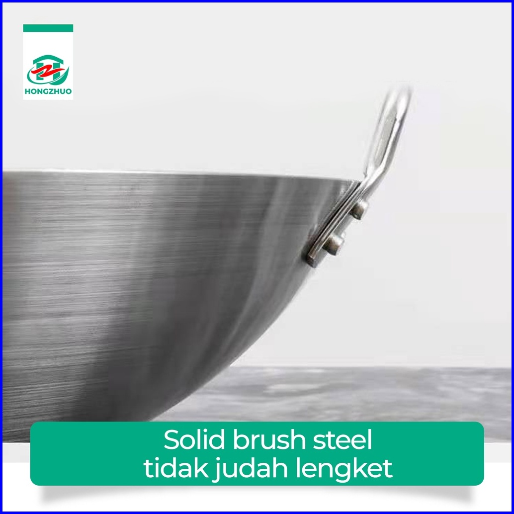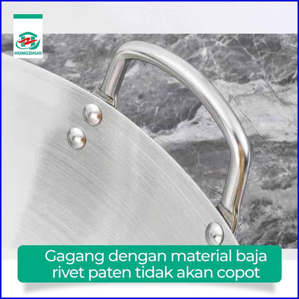 Hongzhuo Wajan Stainless 555 Tebal Kuali Premium Dengan Pegangan Stainless Steel Kuali Besar Katel Anti Lengket