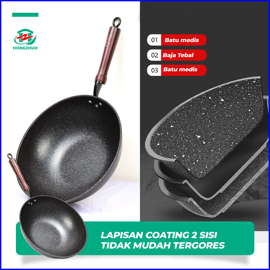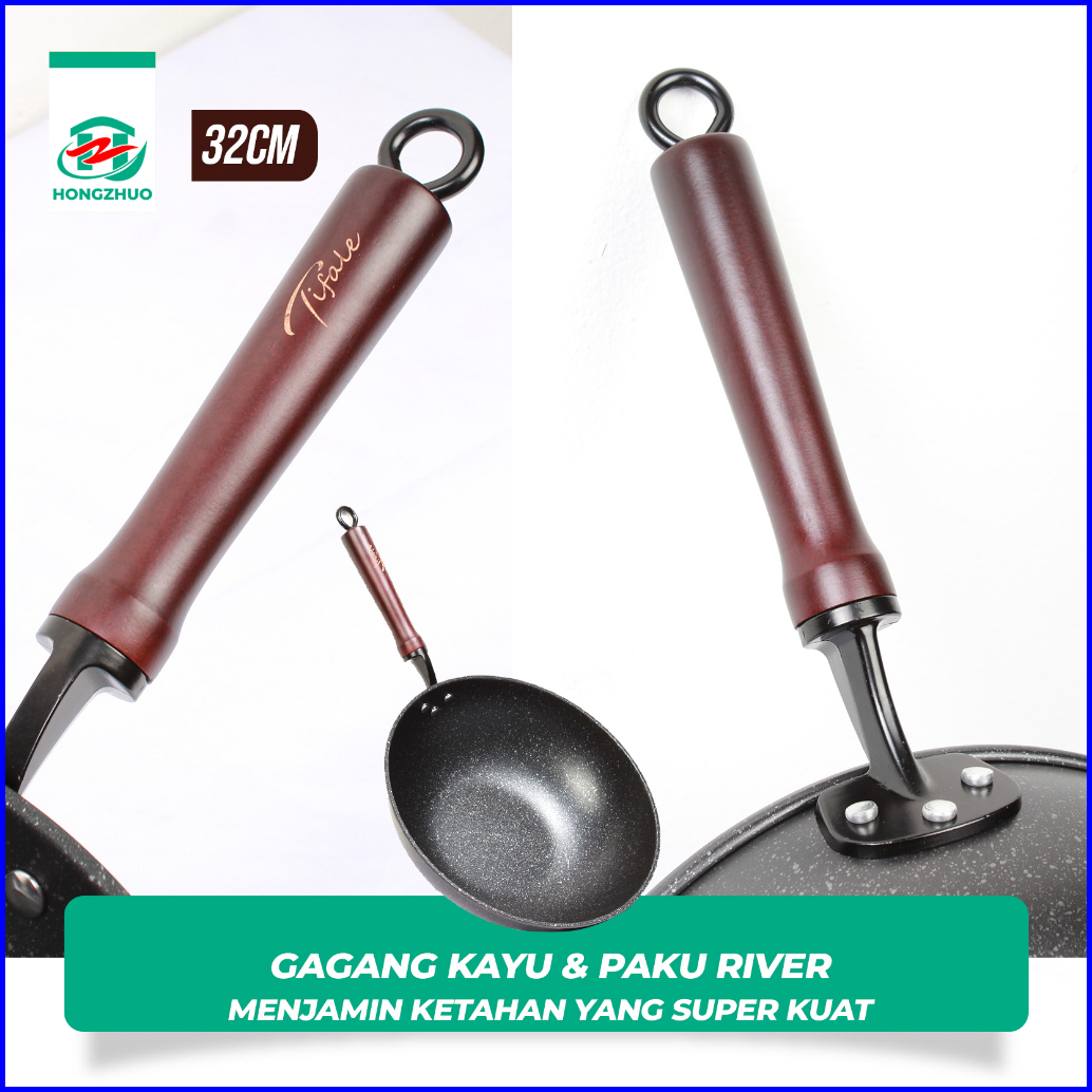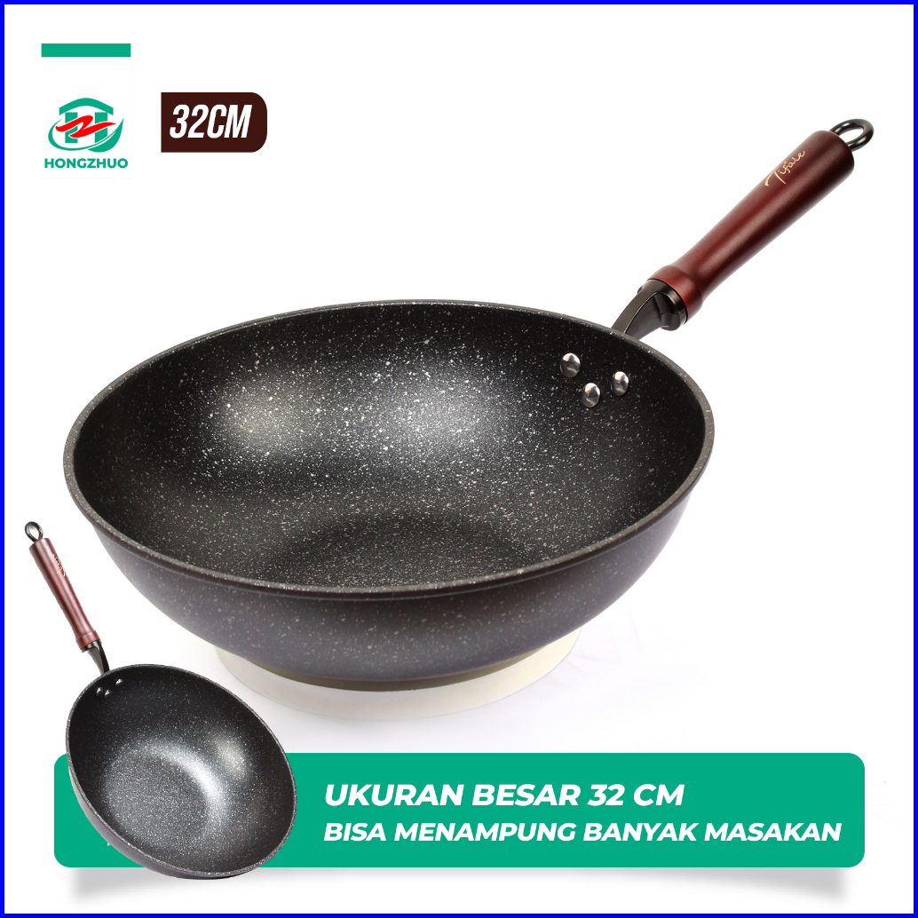 Tifale By Hongzhuo Wajan Maifan Wajan Batu Medis 32cm Anti Lengket Cocok Segala Jenis Kompor Gagang Kayu Premium Anti Le