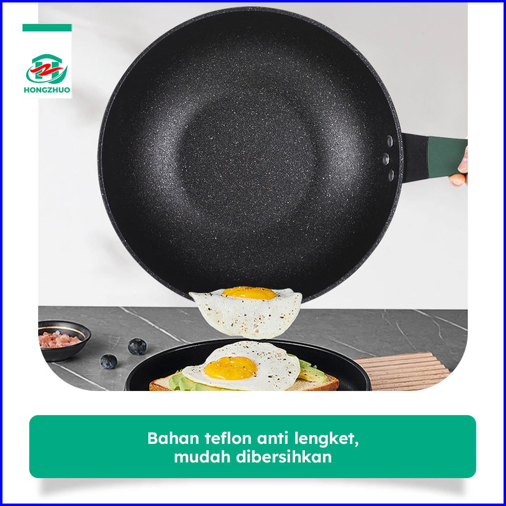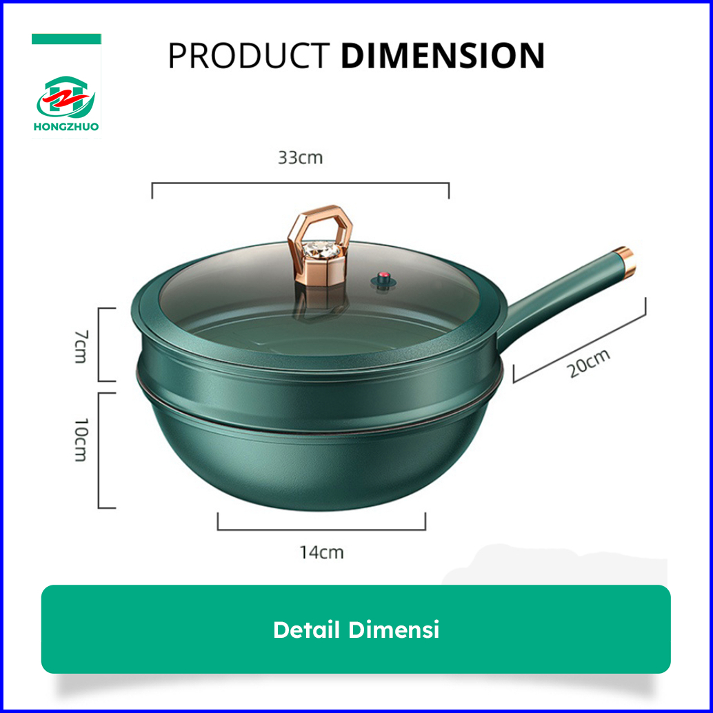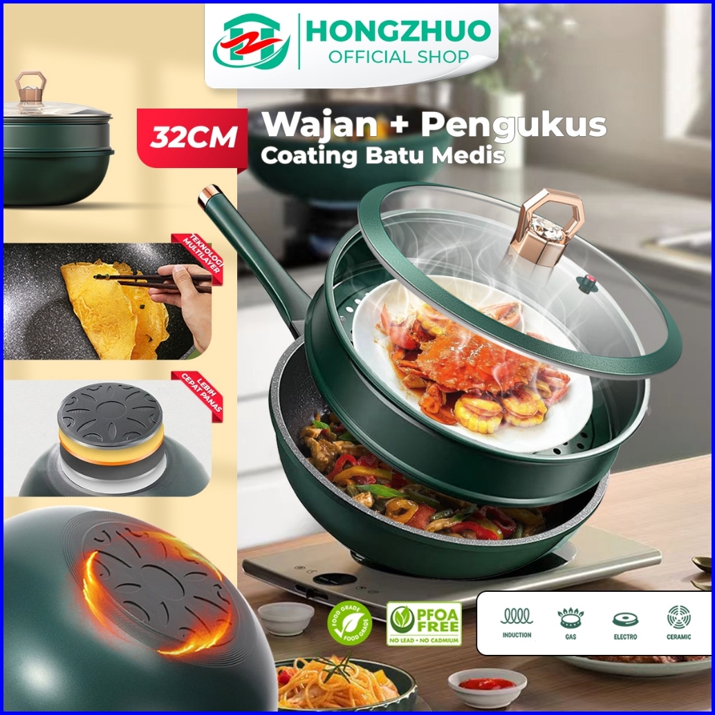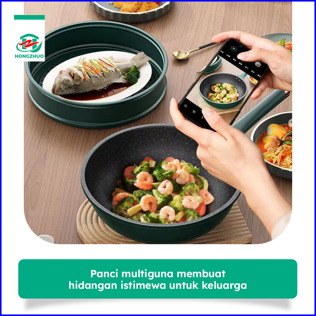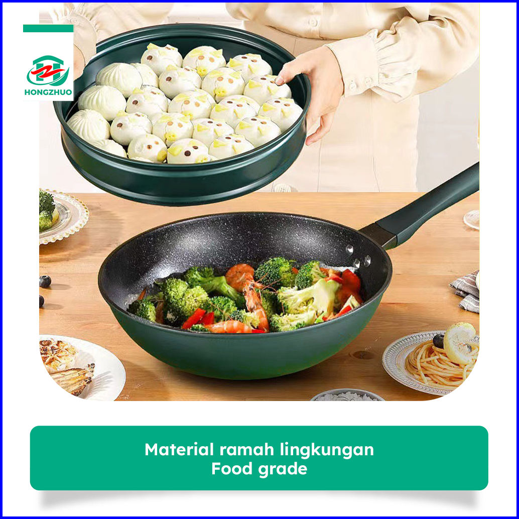 Hongzhuo 3in1 Emerald Green Wajan Batu Medis Dengan Steamer 32 Cm Anti Lengket Hijau Premium Panci Kukus Serba Guna 32cm