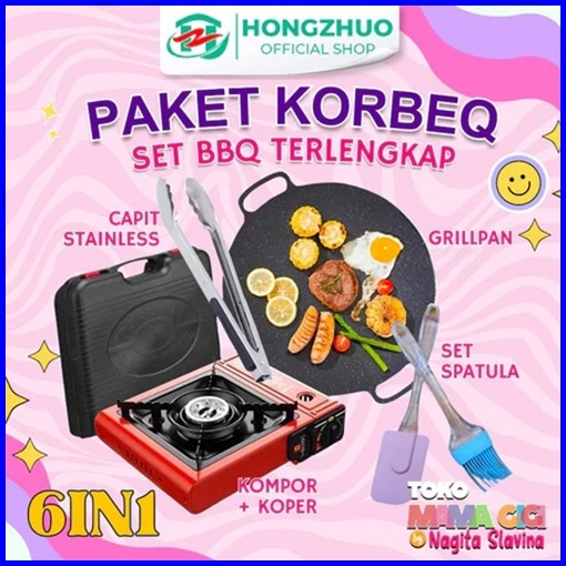 Hongzhuo Paket Combo Bbq 6in1 Kompor Portable Capitan Stainless Pemanggang Peeler Gratis Ongkir Bundling Marble Bulat Ki